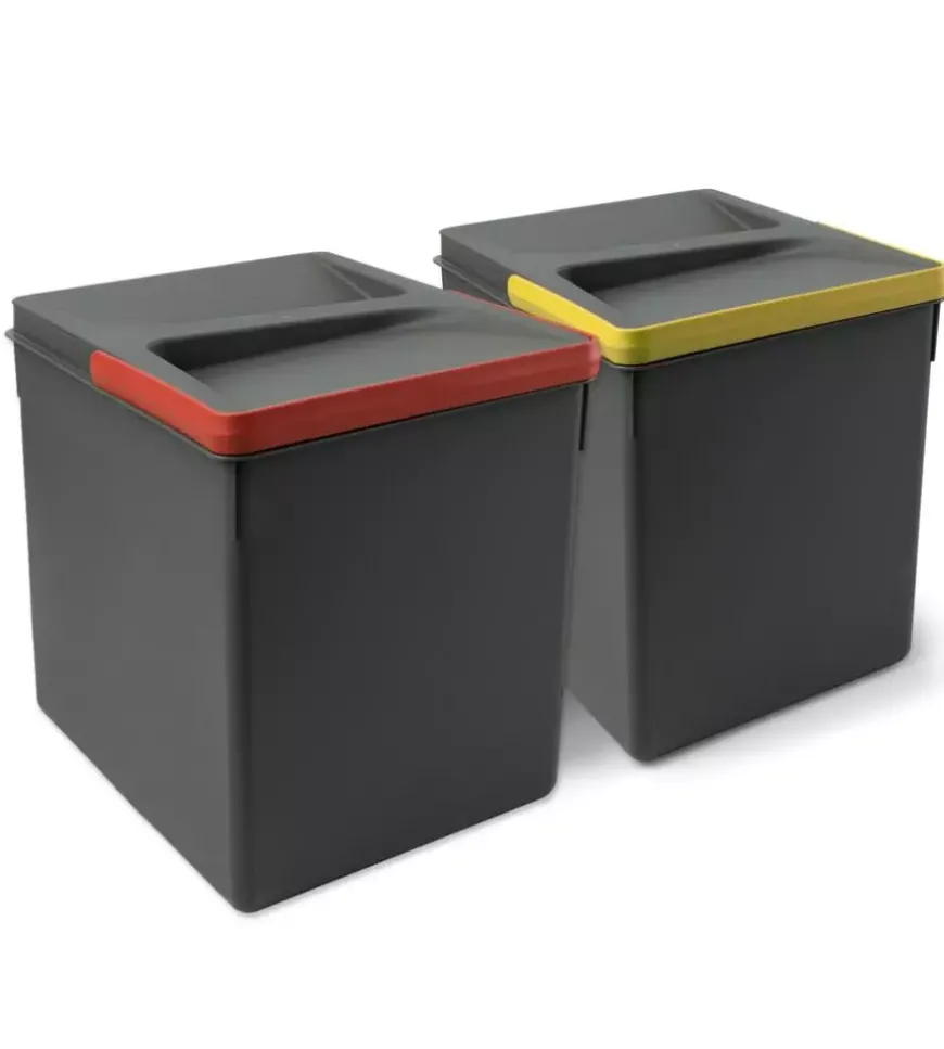 2 contenitori per la raccolta differenziata plastica grigio, 12lt