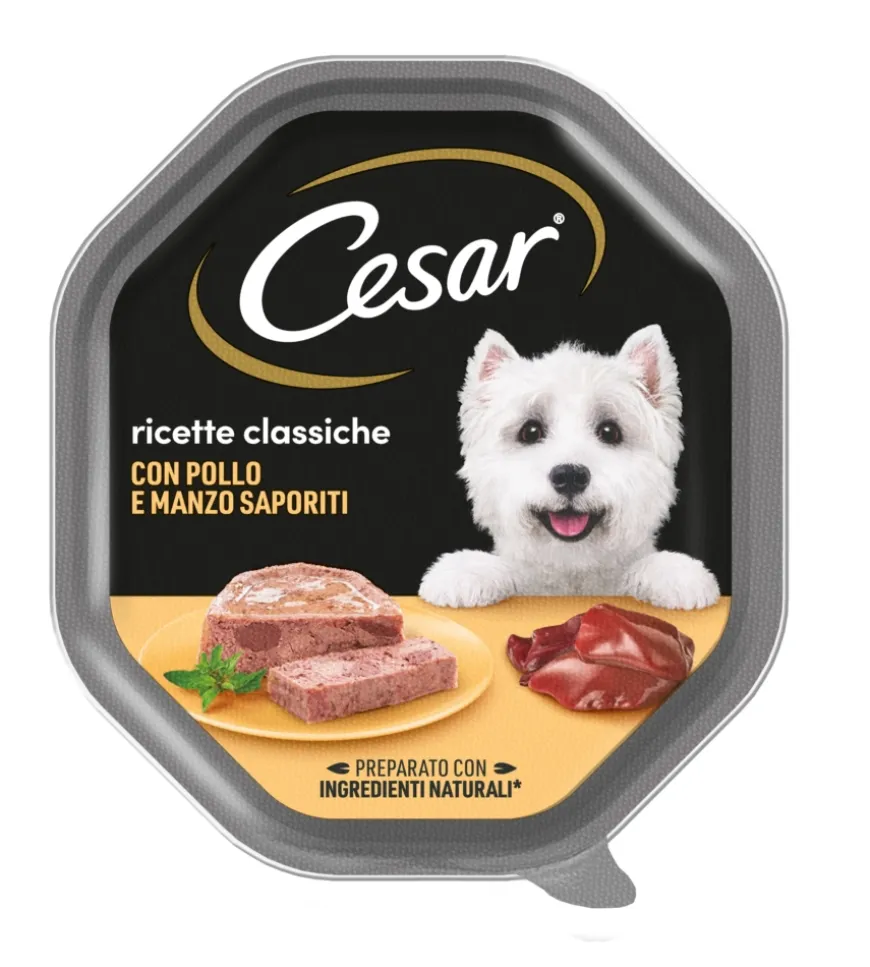 Alimento umido per cani cesar “ricette classiche” con vitello e pollo 150 gr