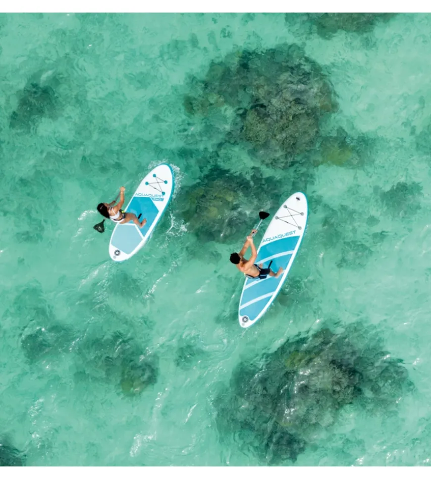 La tavola da paddle Acqua Quest 320 SUP è perfetta per esplorare mari, laghi e coste in totale libertà. Progettata per offrire il massimo piacere durante le escursioni sull’acqua, unisce materiali di qualità e tecnologie avanzate per garantire performance elevate e comfort. La piattaforma in EVA antiscivolo assicura una stabilità ottimale anche durante la pagaiata più intensa, mentre la tecnologia Drop Stitch, basata su una struttura tridimensionale interna, rende la tavola compatta, resistente e rigida come una tavola rigida, pur essendo gonfiabile. La tavola si gonfia in meno di 10 minuti grazie alla pompa ad alta pressione a doppia azione con manometro incorporato. Inclusa nell’acquisto anche una pagaia regolabile in alluminio, leggera e versatile.
