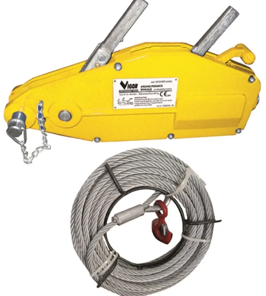 L’argano manuale di Vigor è ideale per sollevare o trarre carichi pesanti. Grazie alla fune da 16 mm di diametro e 20 metri di lunghezza, consente una grande versatilità operativa, permettendo di coprire distanze significative senza compromettere la sicurezza e l’efficacia del sollevamento. Con una capacità di sollevamento massima di 3200 kg, questo argano è perfetto per movimentare carichi pesanti con facilità e sicurezza.