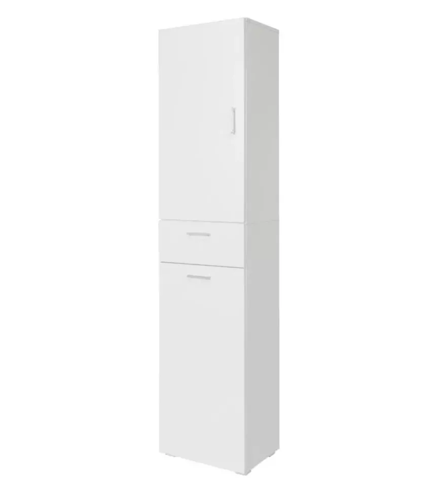 Armadio 1 anta, 1 cassetto e 1 cestello portabiancheria colore bianco, 45x32x195 cm.