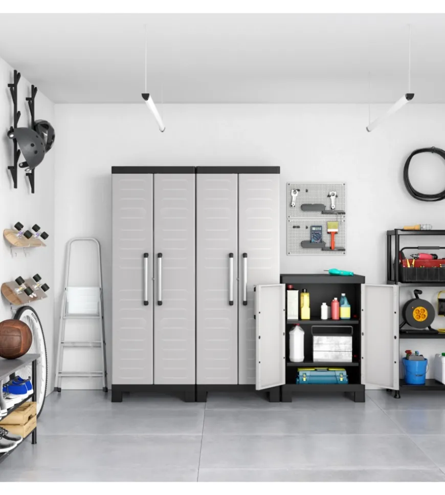 Questo armadio è dotato di due ripiani interni regolabili, ciascuno con una portata di 15 kg, per una gestione ottimale dello spazio di stoccaggio. La chiusura è predisposta per l’inserimento di un lucchetto (non incluso), garantendo maggiore sicurezza, mentre le maniglie in alluminio assicurano praticità e resistenza. Progettato per ambienti esterni o locali di servizio come cantine e garage, questo armadio protegge gli oggetti da agenti atmosferici e polvere, grazie alla sua costruzione robusta e ai piedini rialzati che facilitano la pulizia del pavimento sottostante. Può essere facilmente abbinato ad altri modelli della stessa serie per una soluzione di stoccaggio completa e coordinata. Il prodotto viene spedito in kit da montare, pronto per essere assemblato con facilità.