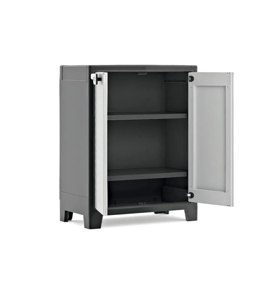 La struttura dell’armadio è solida e resistente, con ante equipaggiate con cerniere in metallo per garantire durabilità e facilità d’uso. Le maniglie sono progettate per essere lucchettabili, offrendo una sicurezza aggiuntiva per i tuoi beni (lucchetto non incluso).