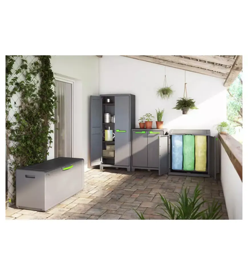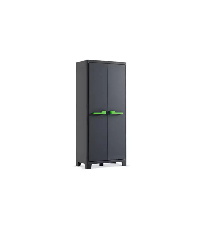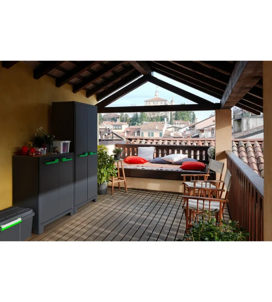- Armadio Keter “Moby” alto in colorazione grafite con maniglie verdi