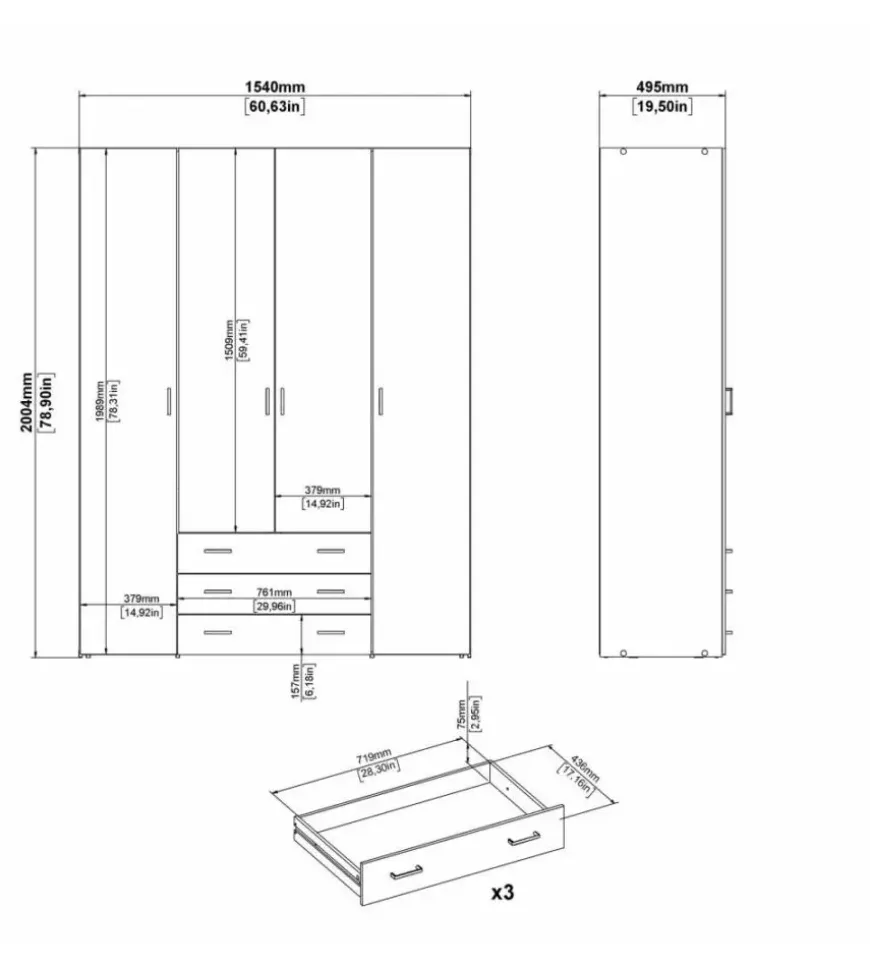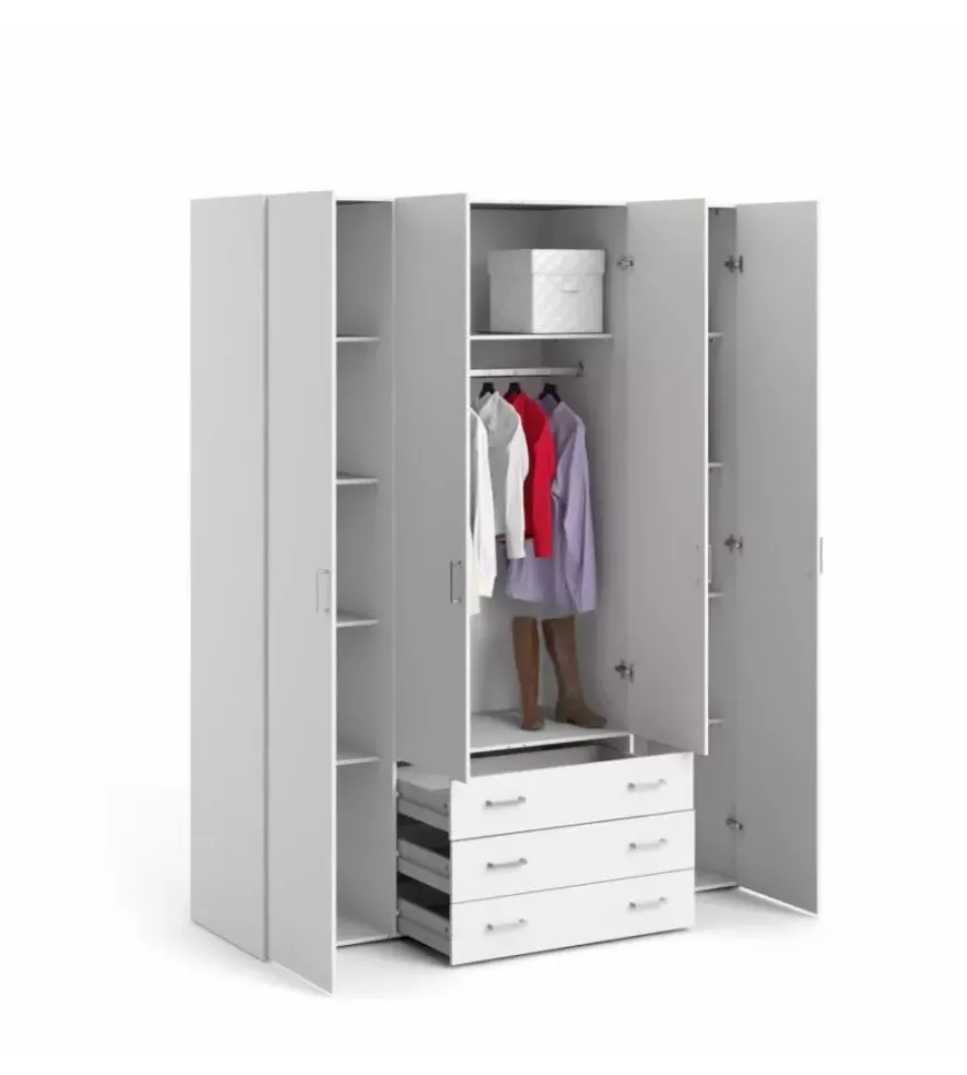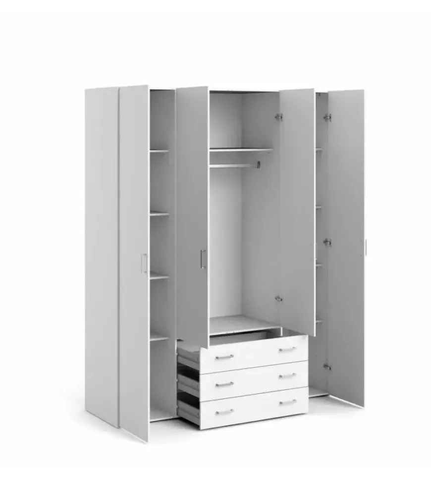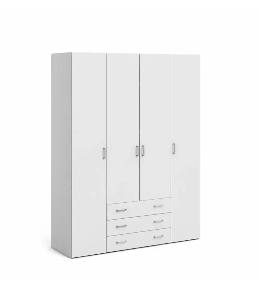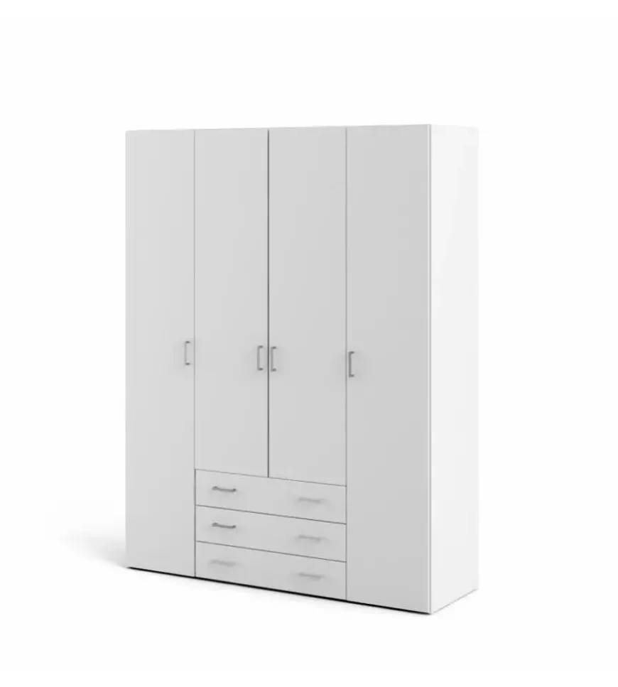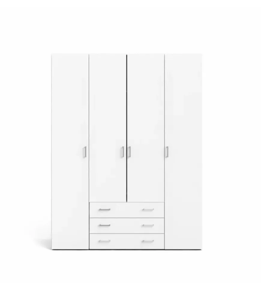 Armadio “Space” con 4 ante e 3 cassetti bianco, 154×49,5×200,4 cm.