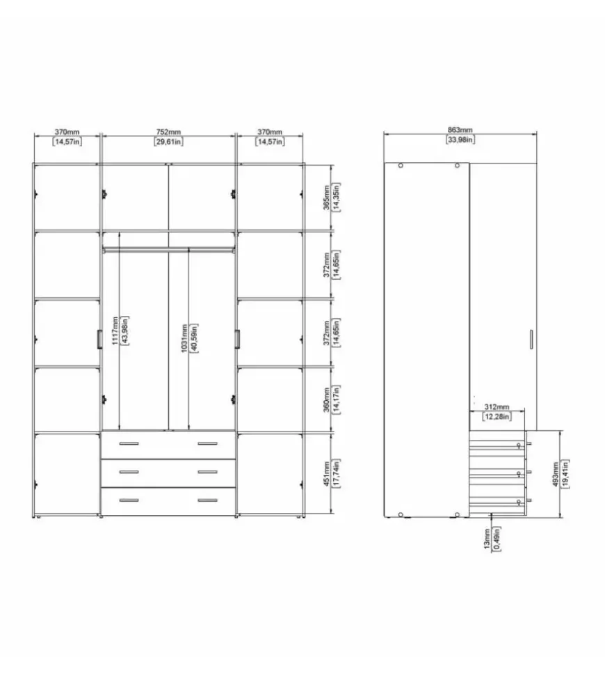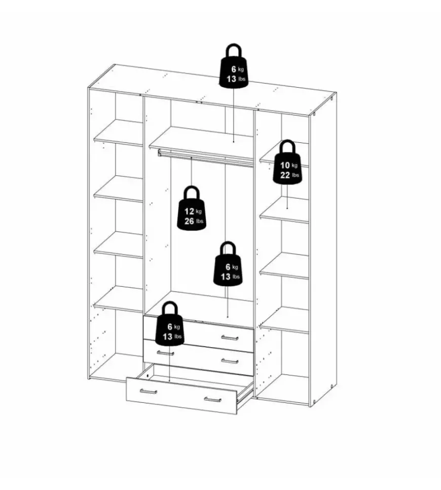 L’armadio “Space” è realizzato in laminato rifinito bianco laccato, presentando un design moderno e lineare che si integra facilmente con qualsiasi tipo di arredo. Misura ampiamente e offre quattro ante e tre cassetti, garantendo un notevole spazio di archiviazione. Nella grande nicchia centrale, è presente un’asta appendiabiti, perfetta per organizzare abiti, giacche e pantaloni. I due spazi laterali sono dotati di quattro ripiani regolabili, consentendo di personalizzare l’organizzazione interna in base alle esigenze. L’armadio è spedito in kit da montare. L’armadio “Space” rappresenta la soluzione ideale per chi cerca un guardaroba capiente e funzionale, senza compromettere lo stile.