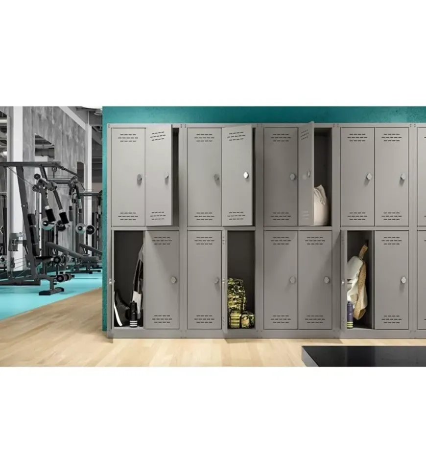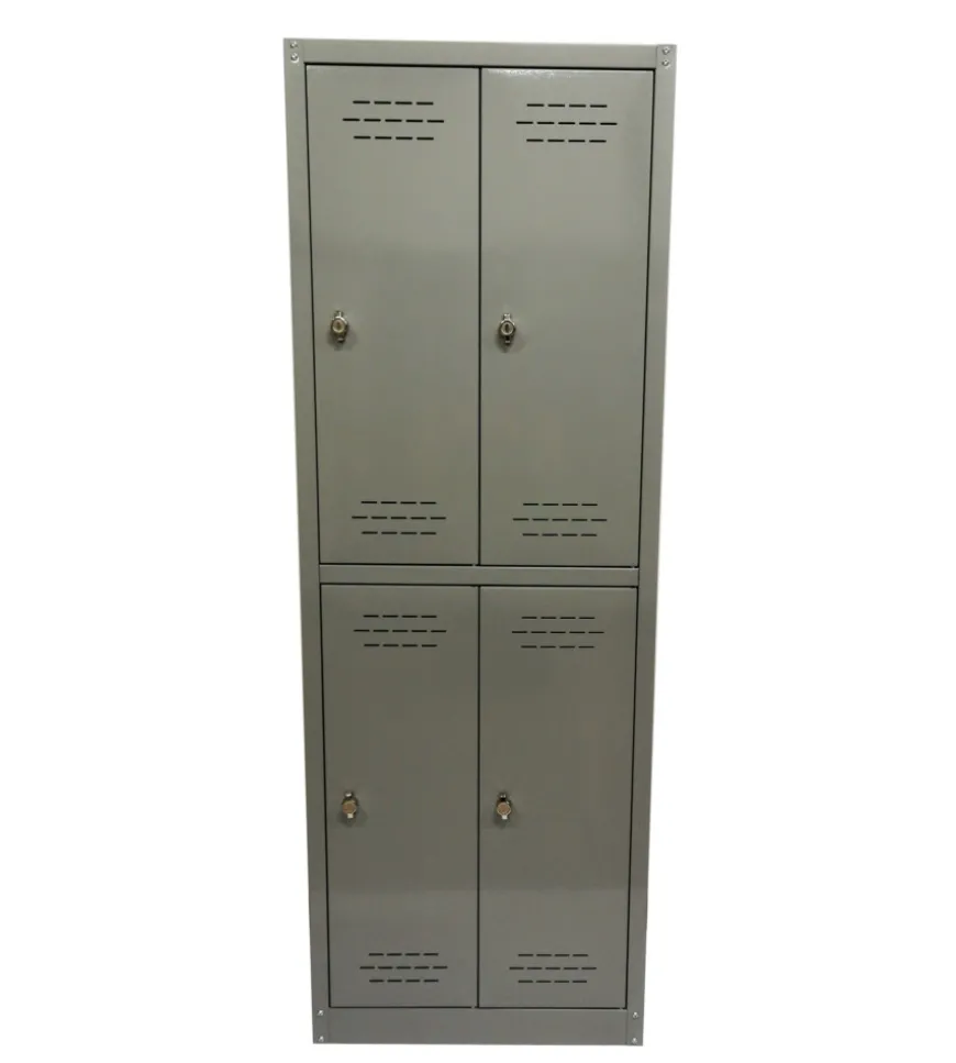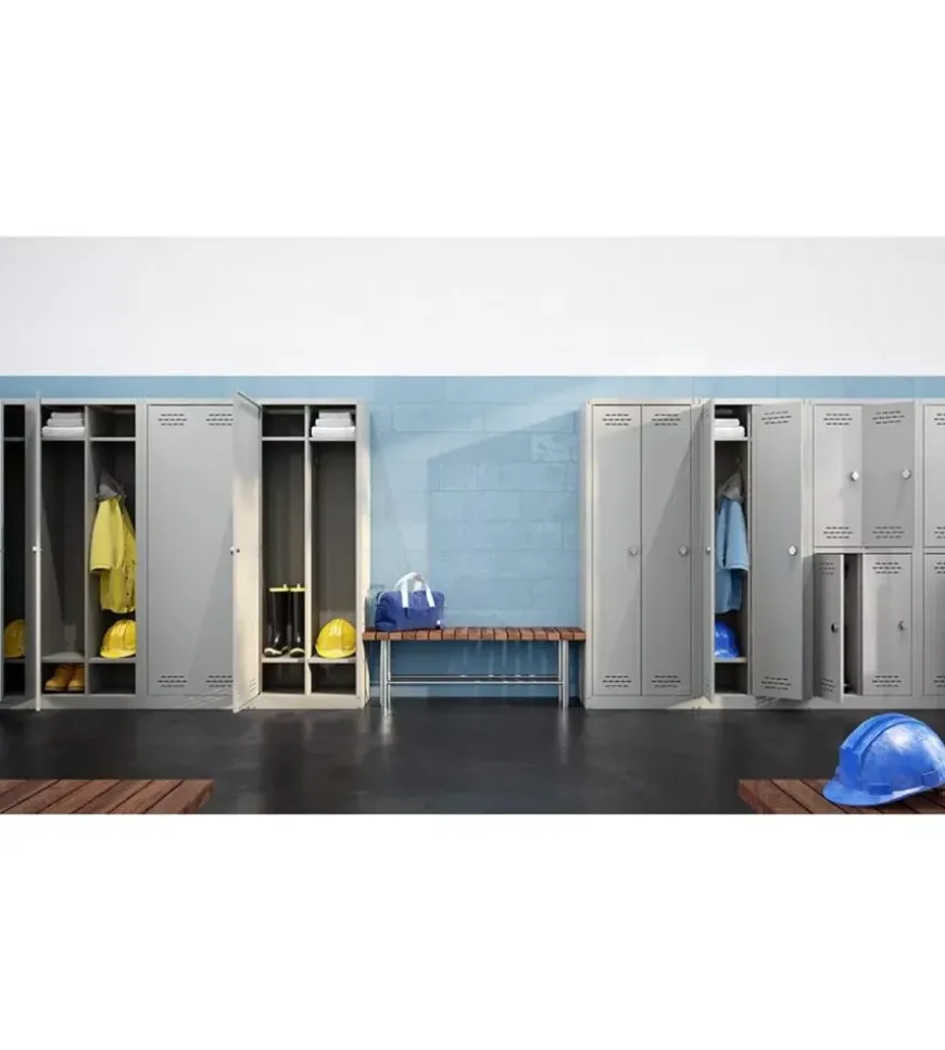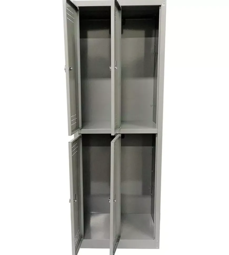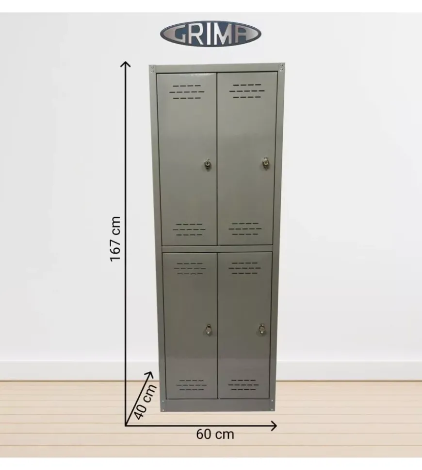 L’allestimento interno include quattro appendiabiti in plastica, permettendo una gestione versatile dello spazio per appender e organizzare vari oggetti. L’armadio è verniciato con polvere epossidica di colore grigio chiaro, offrendo una finitura resistente e un design moderno. Questo armadio è conforme alla Dichiarazione di conformità D.Lgs.81/2008, assicurando il rispetto delle normative di sicurezza e qualità.