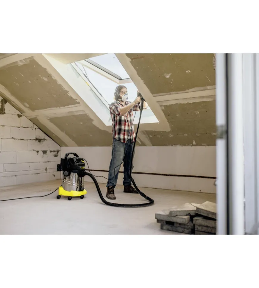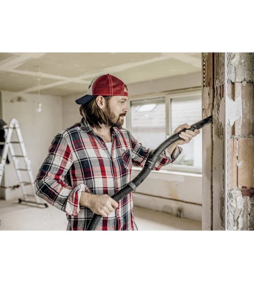 Grazie alla funzione soffiante, è anche possibile rimuovere facilmente i detriti senza bisogno di aspirarli. Con un cavo di alimentazione lungo 8 metri e un tubo di aspirazione in acciaio inox da 2,2 metri, questo aspiratore è ideale per lunghe sessioni di lavoro. La maniglia e il vano porta accessori sono progettati per offrire praticità e salvaspazio, con un comodo sistema di stoccaggio del tubo sulla testa del dispositivo. Le 5 rotelle di guida e il paracolpi assicurano un trasporto sicuro e stabile, mentre la valvola di scarico facilita la rimozione dei liquidi aspirati.