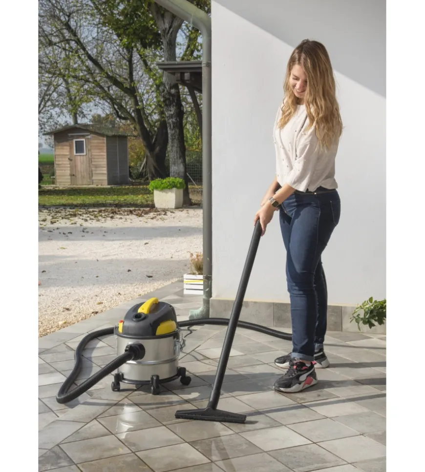 Con una potenza di 1200 W, una pressione di 180 mbar e una portata d’aria di 35 l/s, il dispositivo offre prestazioni elevate, mentre la capacitร combinata di 28 litri (14 + 14 litri) lo rende perfetto per lavori intensivi e vari tipi di pulizia.