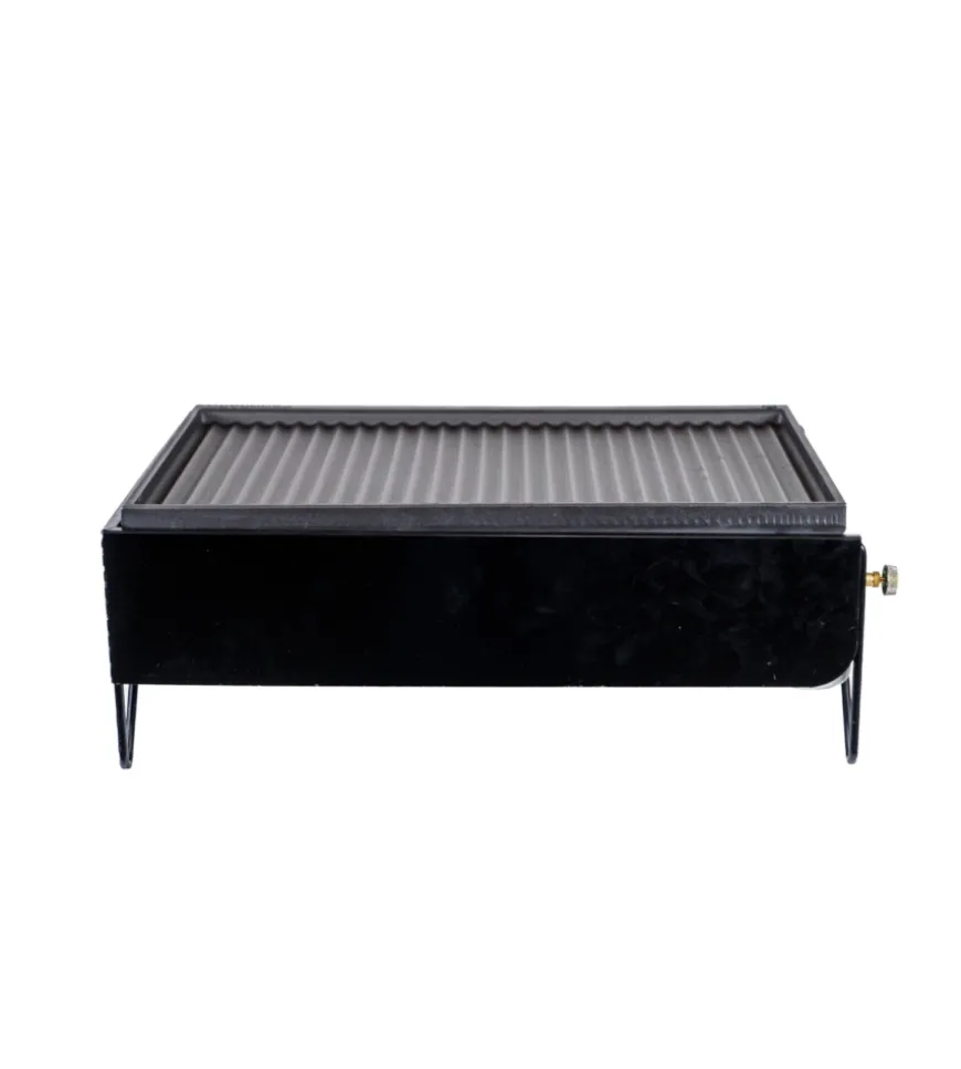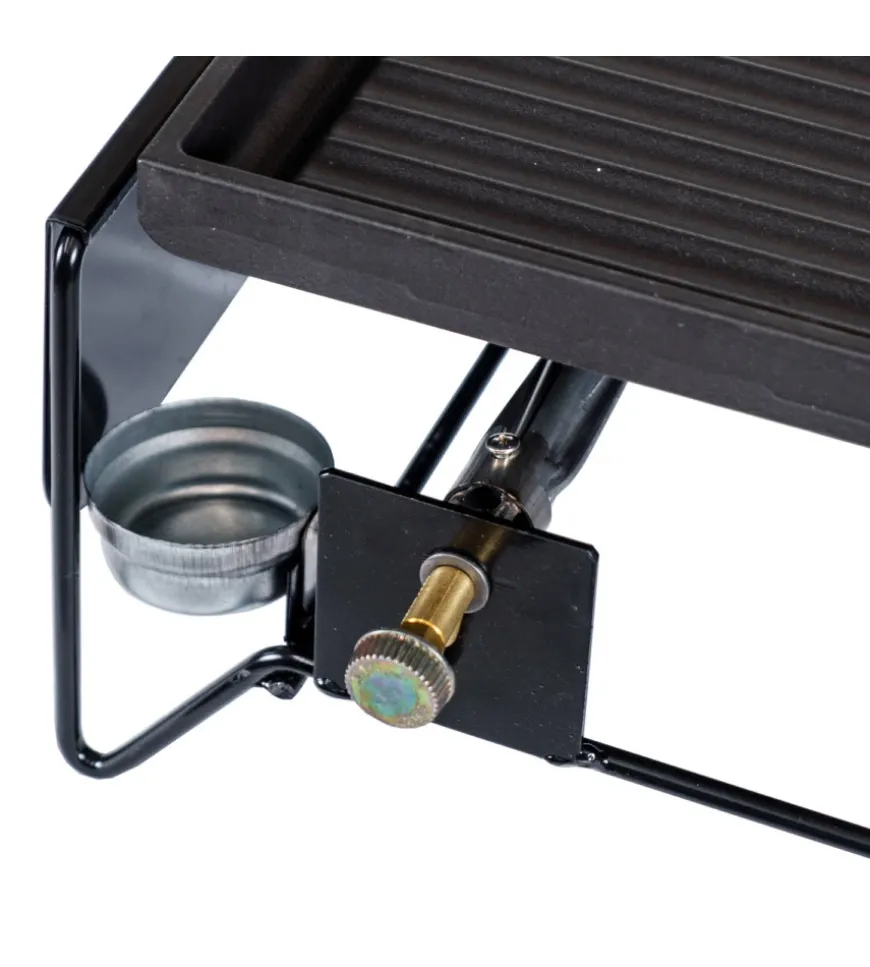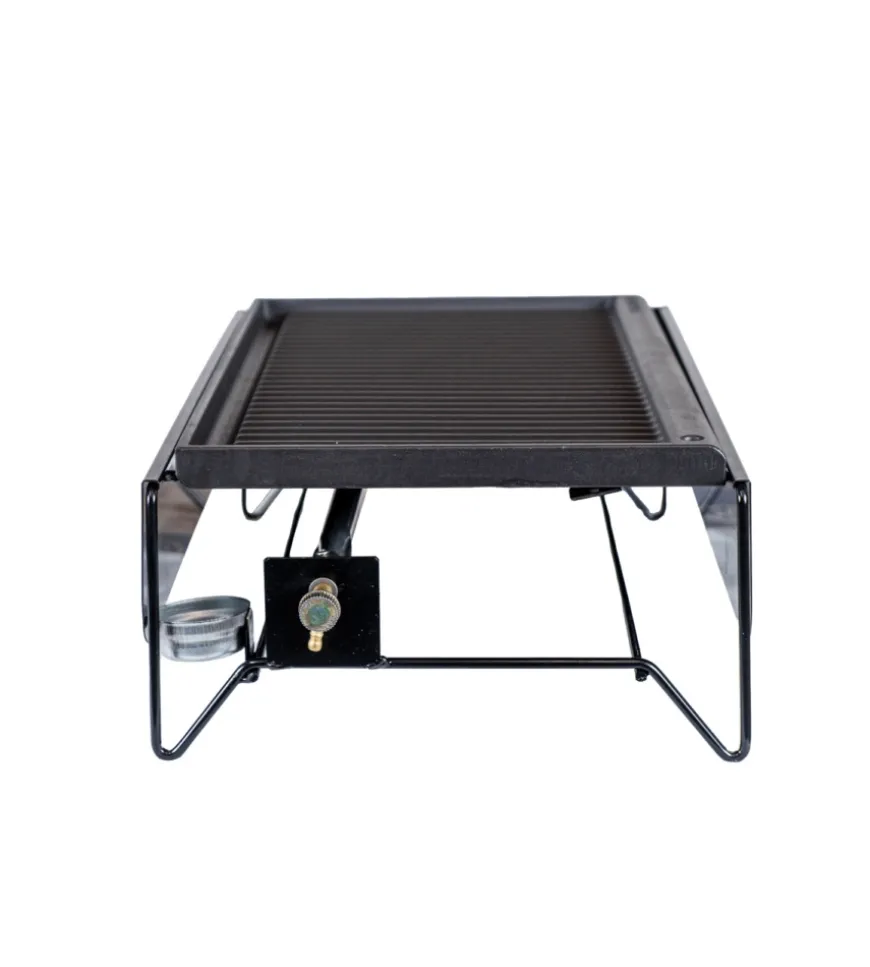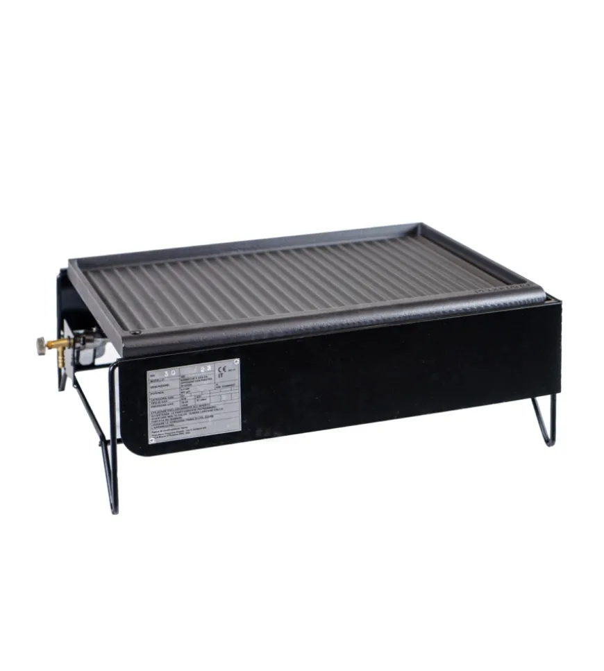 Barbecue a gas nero da esterno, dotato di una pratica piastra bifacciale in ghisa smaltata che consente di cucinare sia sul lato liscio che su quello rigato. Inclusi nel prodotto sono anche uno scolo per l’olio e un pentolino raccogli grasso, per una cottura più sana e pulita. Con questa soluzione compatta e leggera, potrai godere della stessa comoditĆ della tua cucina in casa, ma all’aria aperta, per gustare deliziose prelibatezze con amici e familiari. IlĀ barbecue a gas da appoggio ĆØ realizzato in ferro e ghisa di alta qualitĆ , e presenta le dimensioni di 65x42x22 cm, con una piastra di 60×38 cm.