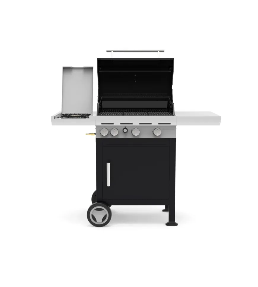 Il barbecue a gas Spring 3212 di Barbecook monta 3 potenti bruciatori ed è dotato di un pratico fornello laterale che ti consente di cucinare qualsiasi pietanza, come per esempio contorni o salse. I 3 bruciatori generano una potenza 11,4 kW mentre il bruciatore laterale ha una potenza di 2,3 kW. Il coperchio in acciaio smaltato monta un termometro integrato che ti permette di mantenere sempre il massimo controllo sulla cottura delle tue pietanze. Le 3 griglie in ghisa smaltata da 21×43 cm consentono di avere un’area di cottura di 63×43 cm, consigliata per servire fino a 10 persone.