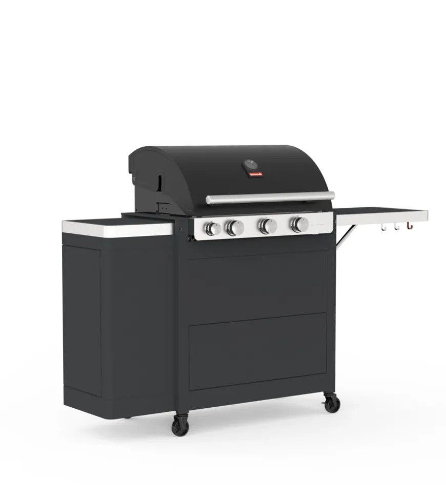 L’ampio tavolino laterale è utilissimo come piano di lavoro dispone di 3 ganci per accessori ed è inoltre ripiegabile per occupare il minimo ingombro. Dispone di un pratico vano laterale per riporre comodamente e in tutta sicurezza la bombola del gas. Telo di copertura Premium in omaggio!