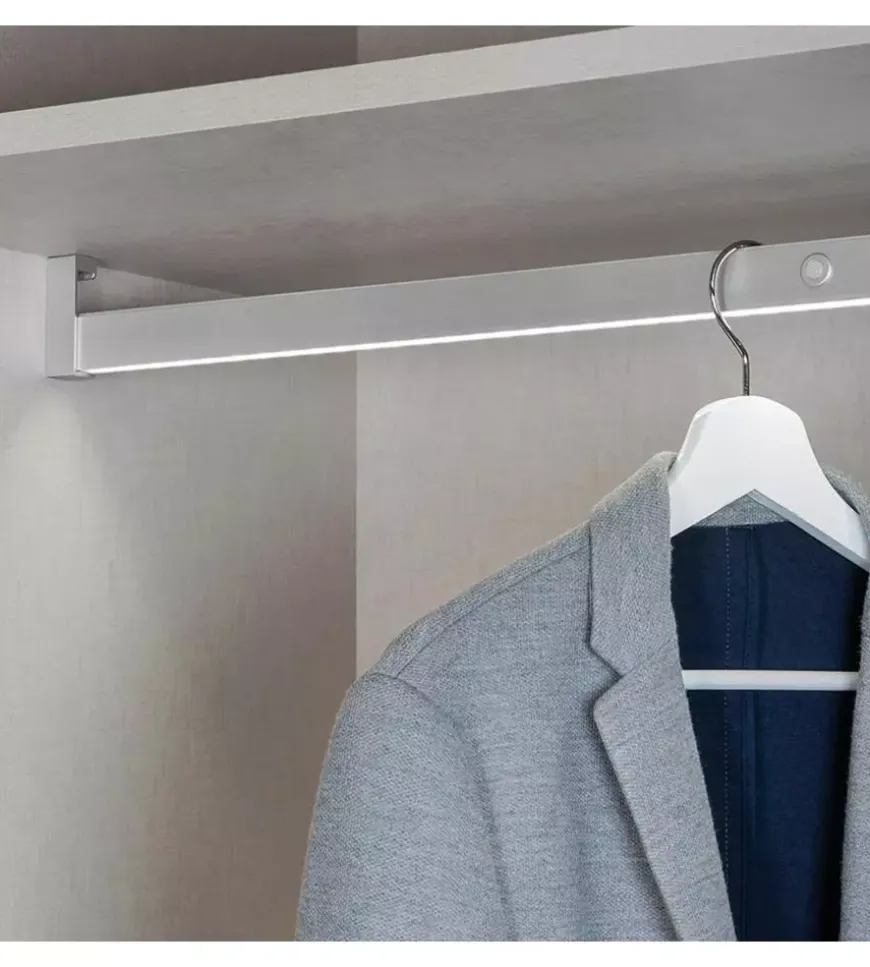 - Barra in alluminio anodizzato opaco con gomma in PVC semirigida per evitare il rumore delle grucce.