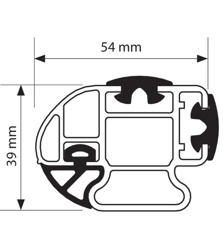 Per veicoli commerciali.Struttura in alluminio con 3 scanalature per inserimento di connettori rapidi a “T”
