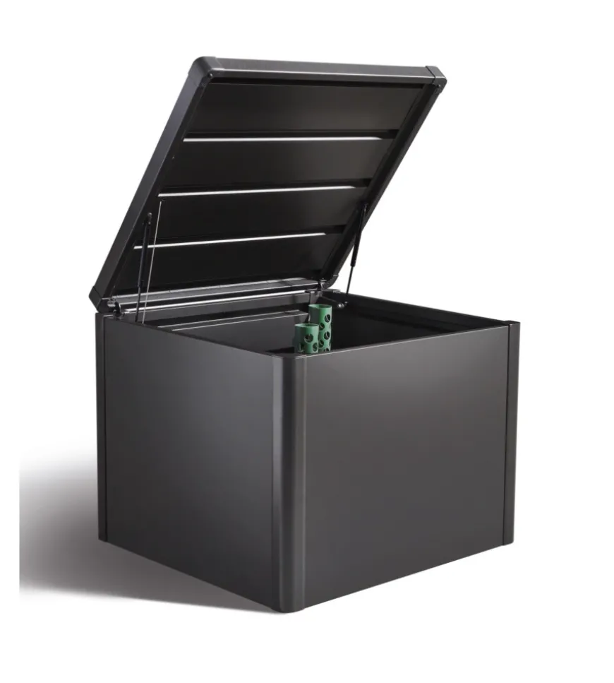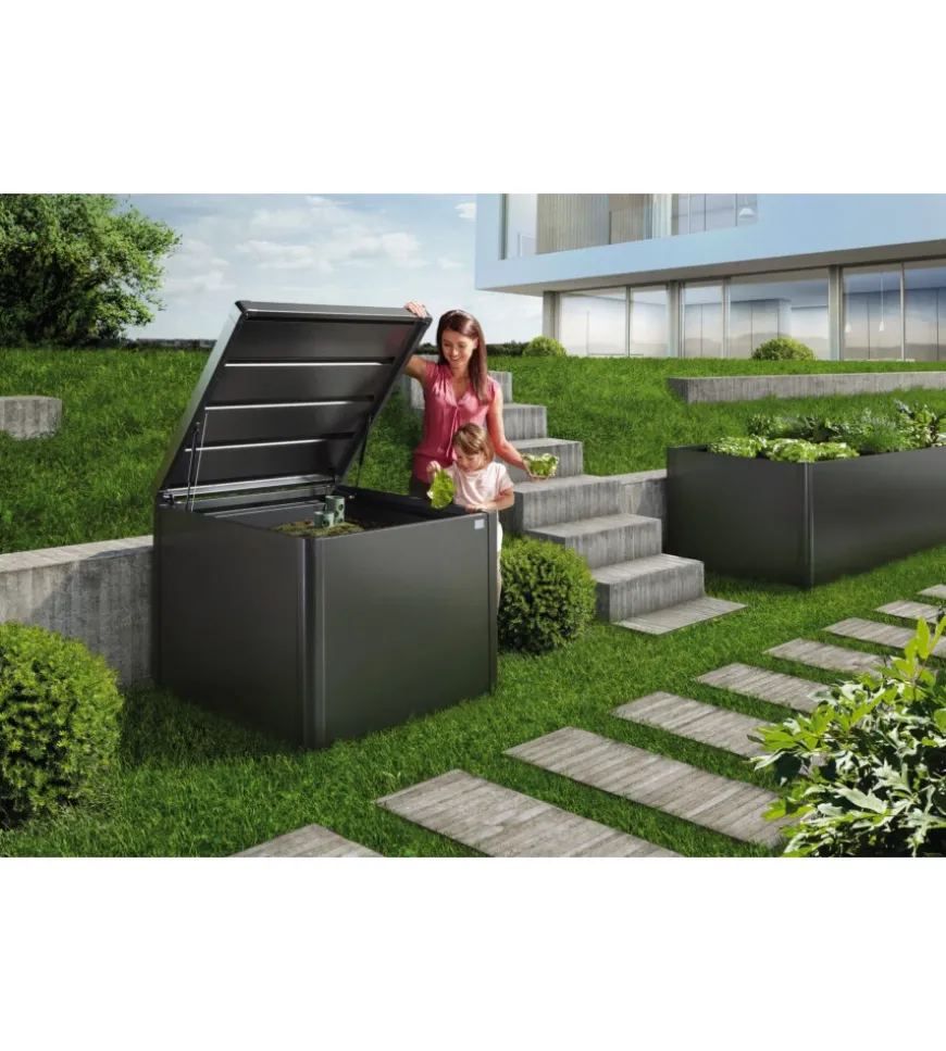La compostiera “Monami” di Biohort combina eleganza con funzionalità: all’esterno superfici lisce e all’interno due tubi di aerazione posizionati al centro per garantire un ottimo processo di decomposizione e un tiraggio sicuro al di sotto del coperchio per il trasporto del calore al di fuori.