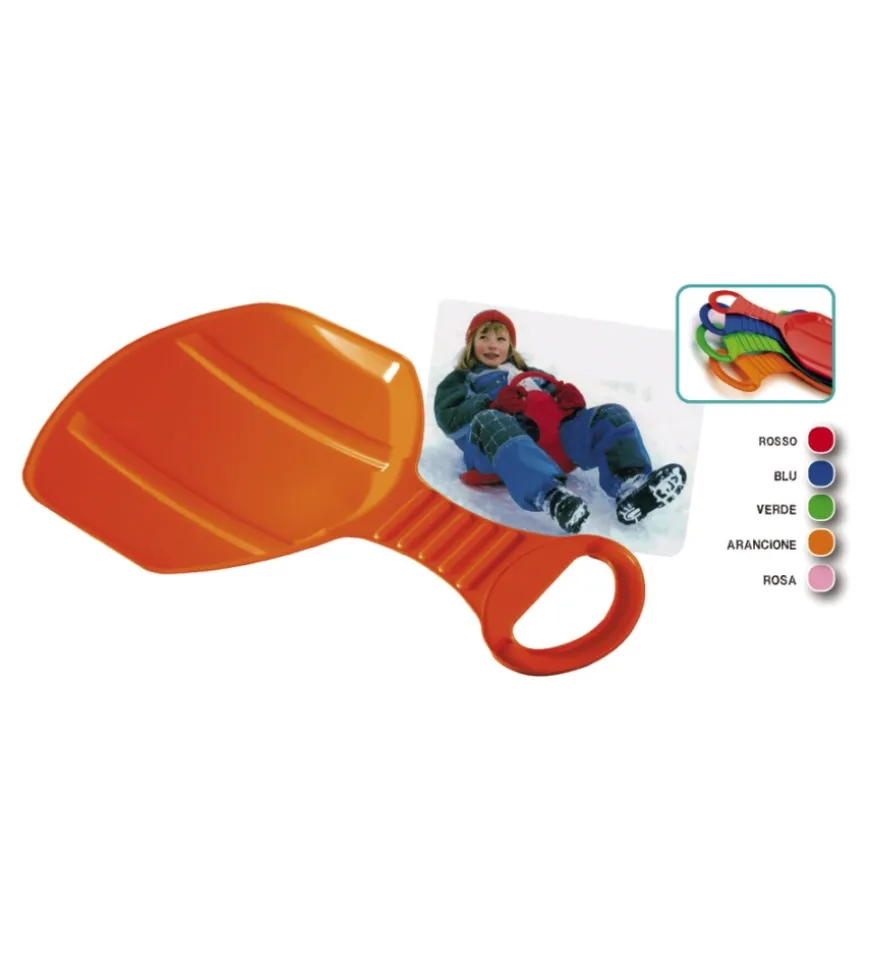 Il bob a forma di piattello è ideale per giocare sulla neve. Non rinunciare al divertimento del tuo bambino su questo bob! Realizzato in polietilene e dotato di maniglia. Il modello Snow Slider è disponibile in 5 colorazioni: verde, rosa, blu, rosso e arancione.