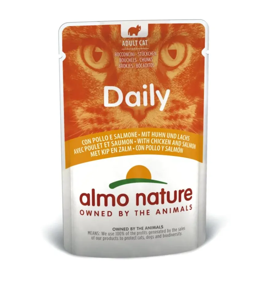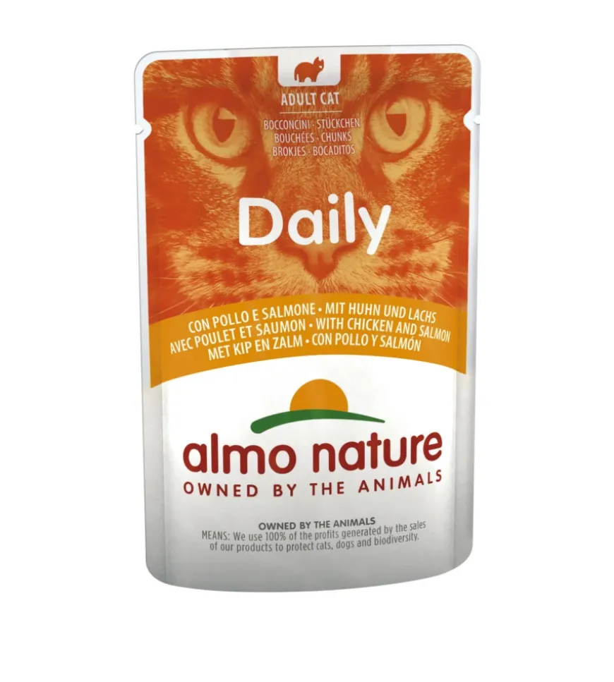 Busta da 70 gr. con pollo e salmone, alimento umido per gatti.