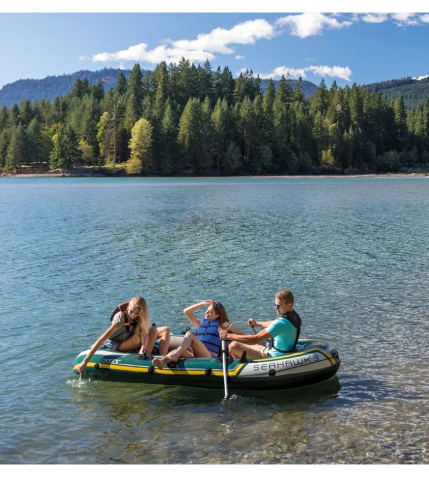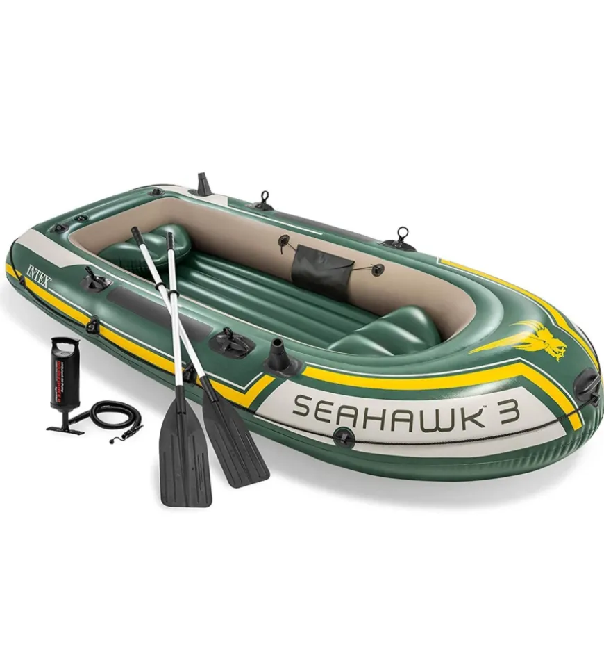Che tu stia pescando, rilassandoti o remando sul lago, il canotto Seahawk 3 è lideale per rendere la tua esperienza di navigazione emozionante e divertente. Ideato per essere utilizzato su fiumi, laghi o al mare. Dotato di 3 camere daria, di cui una interna ausiliaria per garantire maggior sicurezza e galleggiabilità. Realizzato con materiali di alta qualità, PVC resistente alle forature, vinile triplo strato, per garantire comfort e unottima resistenza ad urti e abrasioni. Il pavimento è gonfiabile con trave a I per dare maggiore rigidità alla struttura.