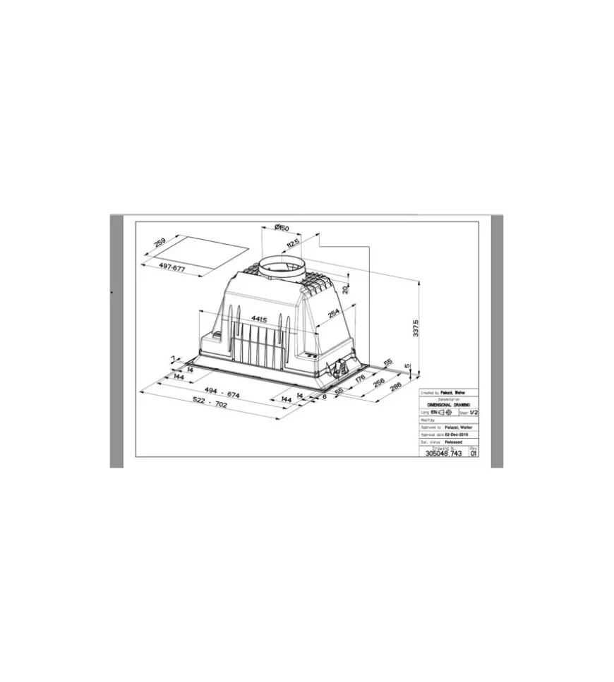 - Dimensioni compatte: 52 cm di larghezza, uscita d’aria Ø 120 mm