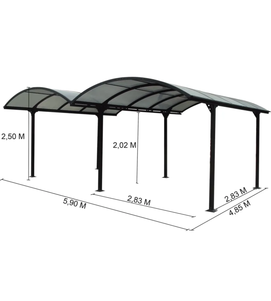 - Copertura tetto: 20 pannelli in policarbonato ANTI-UV, colore translucido scuro