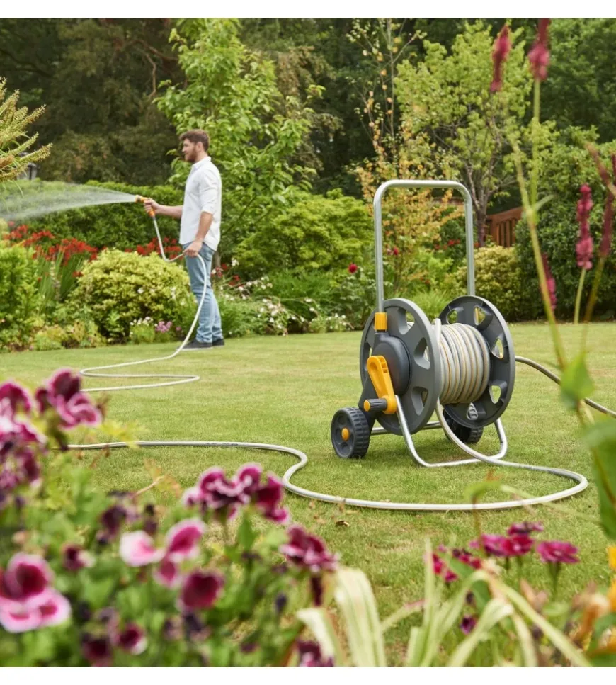 Il carrello avvolgitubo assemblato da 45 m, completo di un tubo da 20 m di lunghezza e 12,5 mm di diametro, insieme a tutti i raccordi necessari per iniziare subito ad innaffiare il tuo giardino. La sua struttura a pavimento, dotata di una maniglia di grandi dimensioni, consente una facile movimentazione in tutto il giardino senza alcuno sforzo eccessivo. Costruito per durare nel tempo, il carrello avvolgitubo è realizzato con materiali robusti e presenta una base più ampia per garantire maggiore durevolezza e stabilità durante l’uso. La manovella monopezzo e il robusto telaio consentono un riavvolgimento del tubo facile e veloce, senza intoppi o complicazioni.