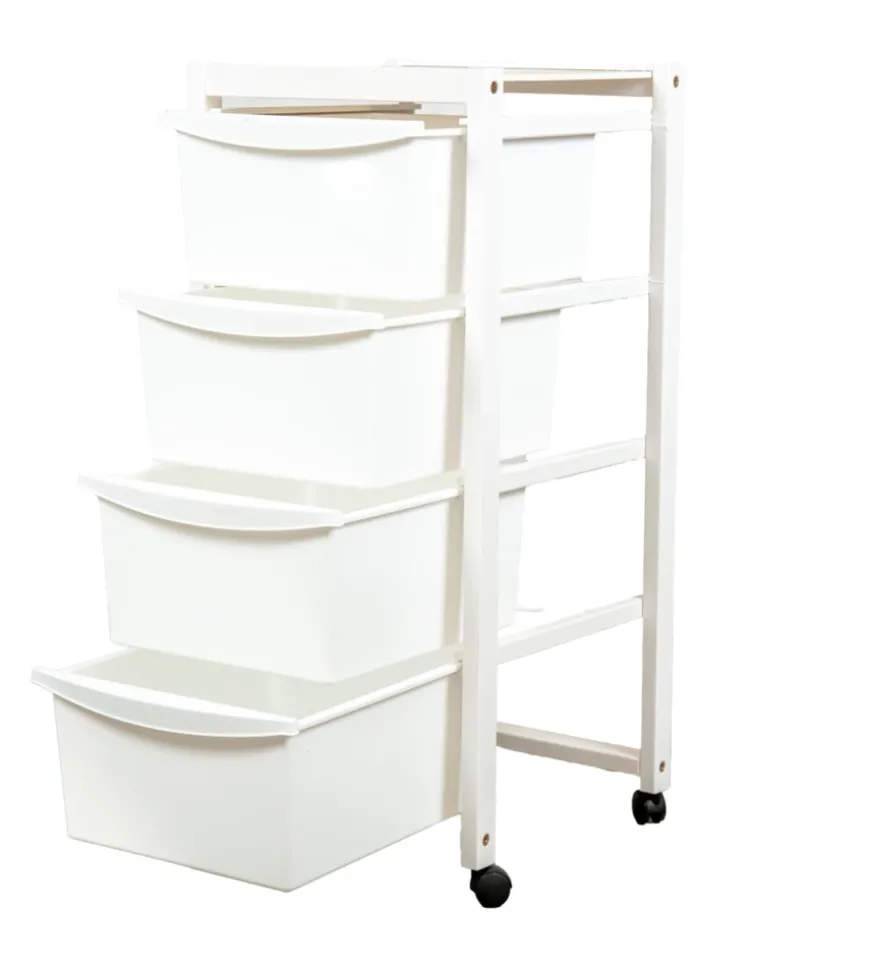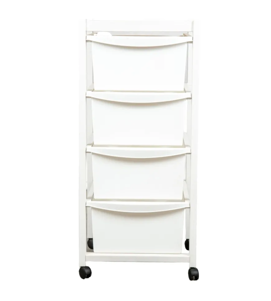 Pratico carrello multiuso con 4 cassetti ideale per il soggiorno, la camera o la cucina.