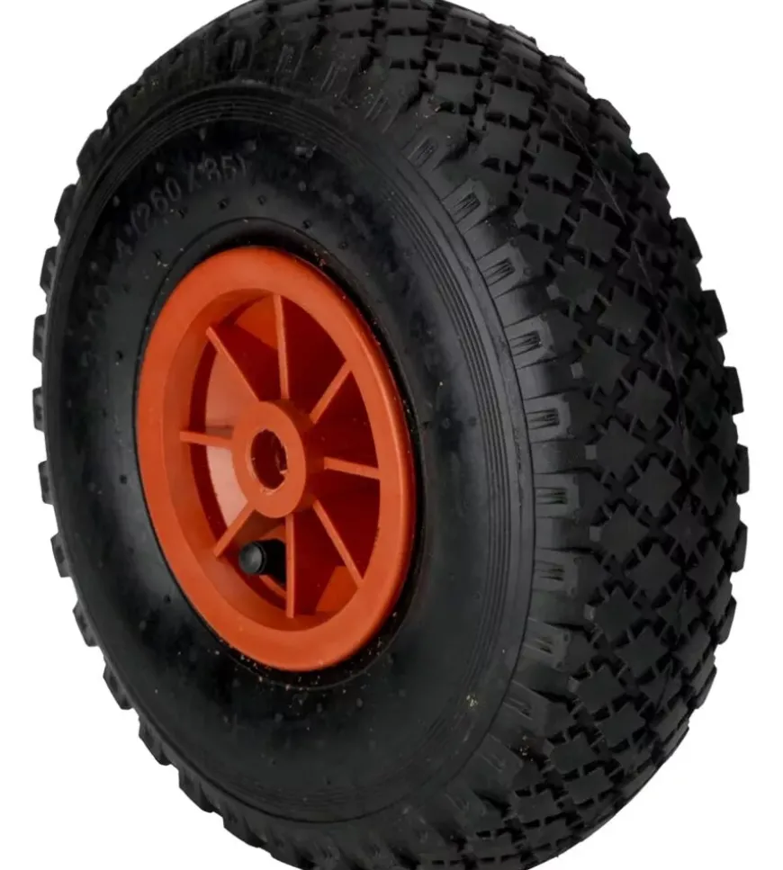 - Ruote pneumatiche: 26×8,5 cm con cerchi in plastica rossa