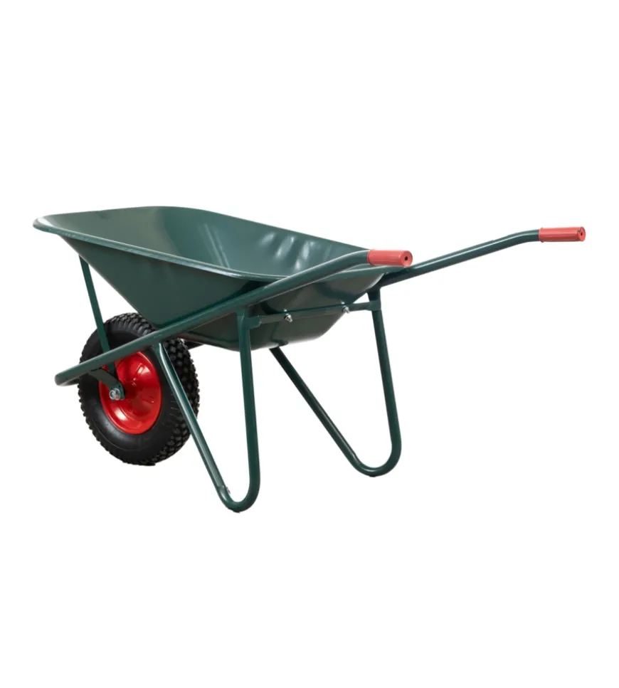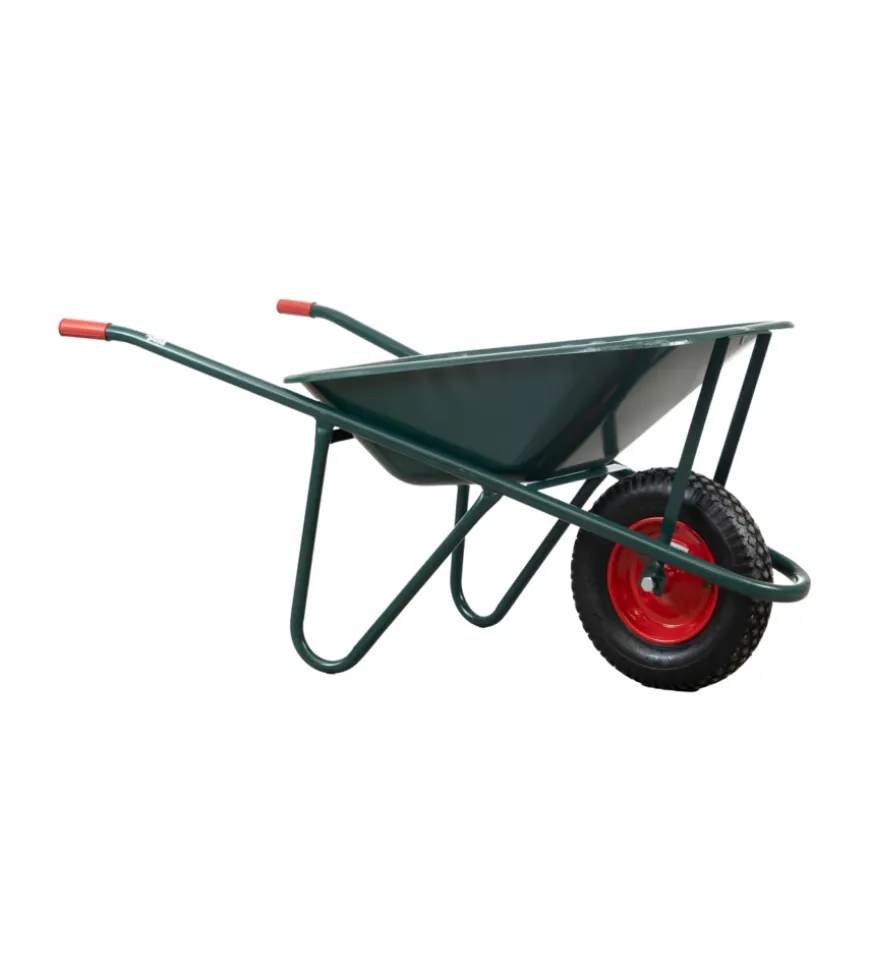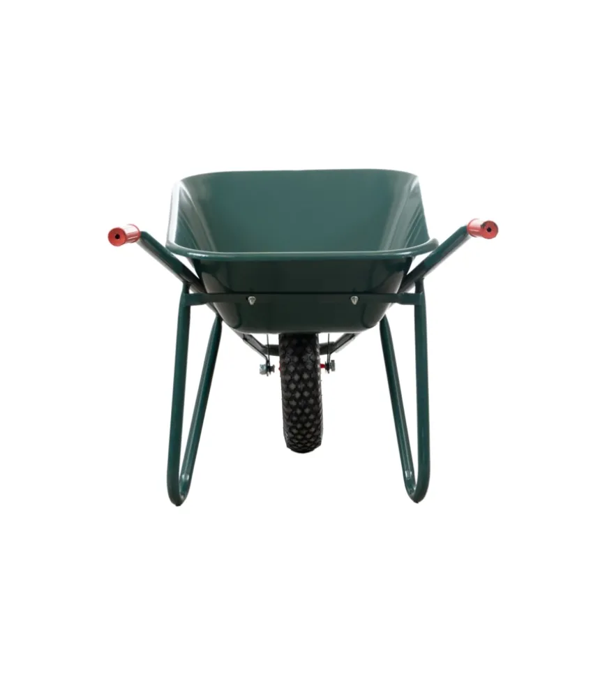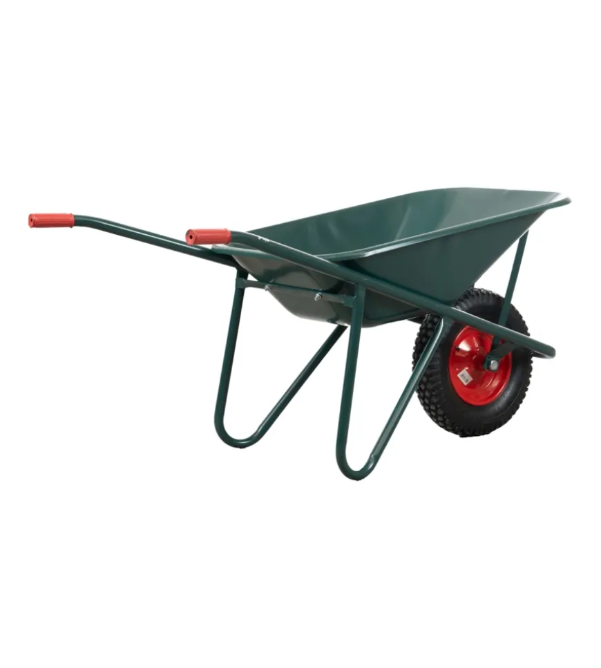 Carriola da giardino in robusto acciaio zincato con vasca da 75 litri. Struttura saldata per maggiore resistenza, bordo arrotondato e lamiera laminata a freddo verniciata verde per una maggiore durabilità.