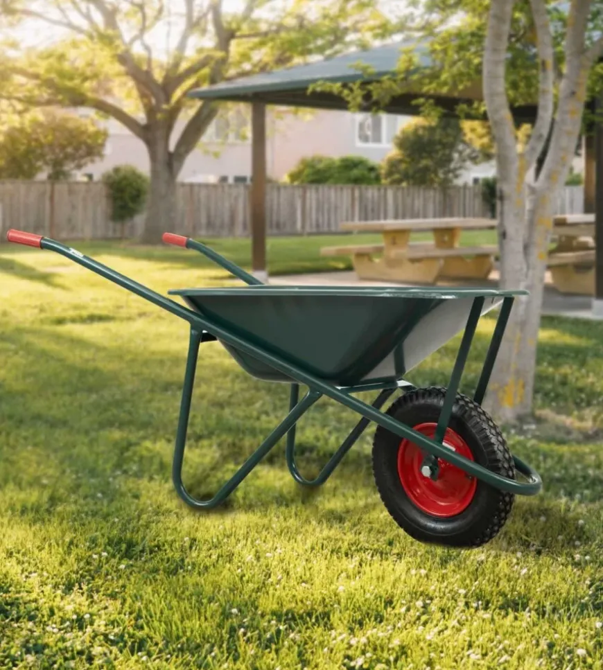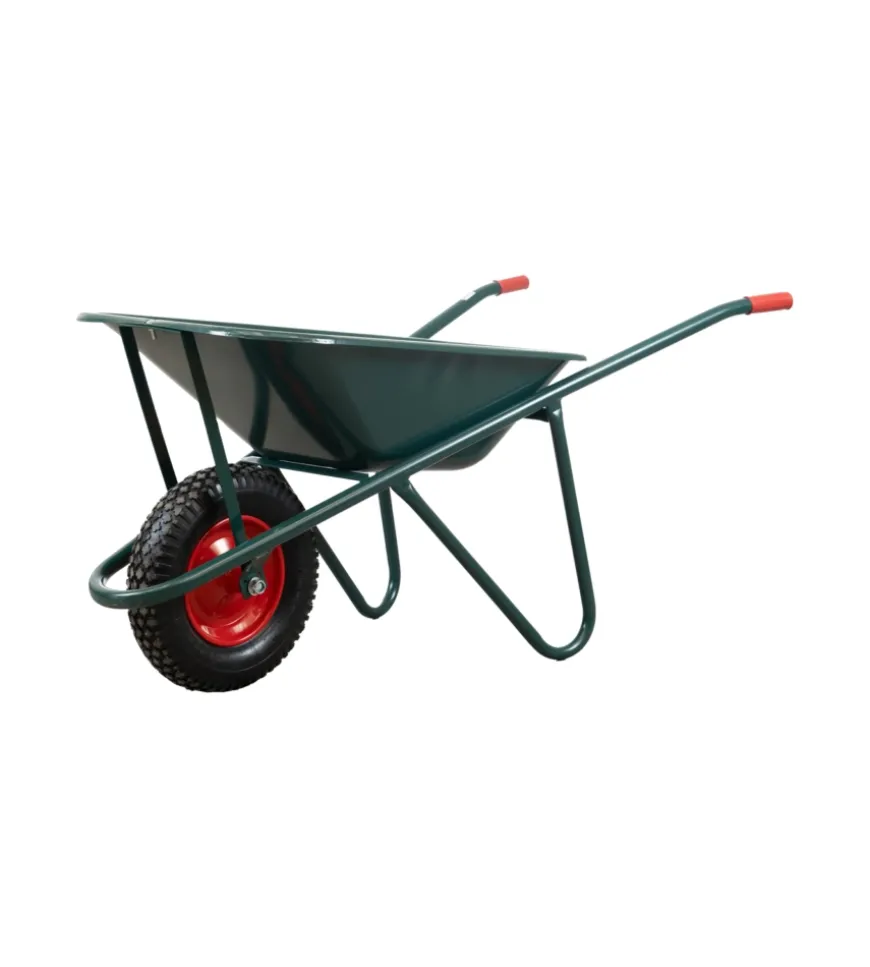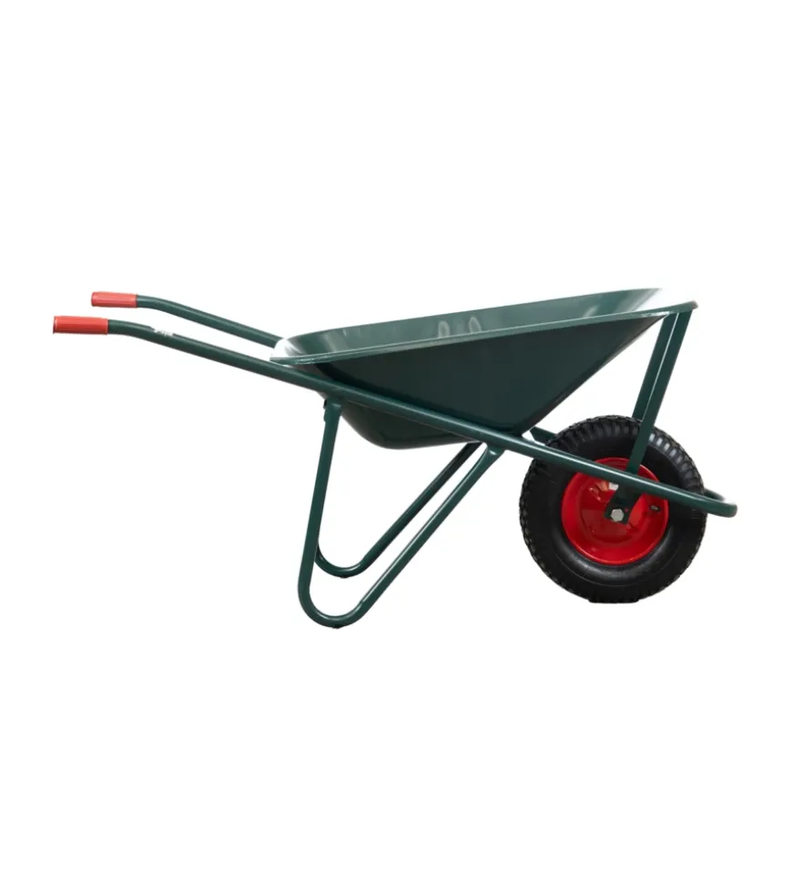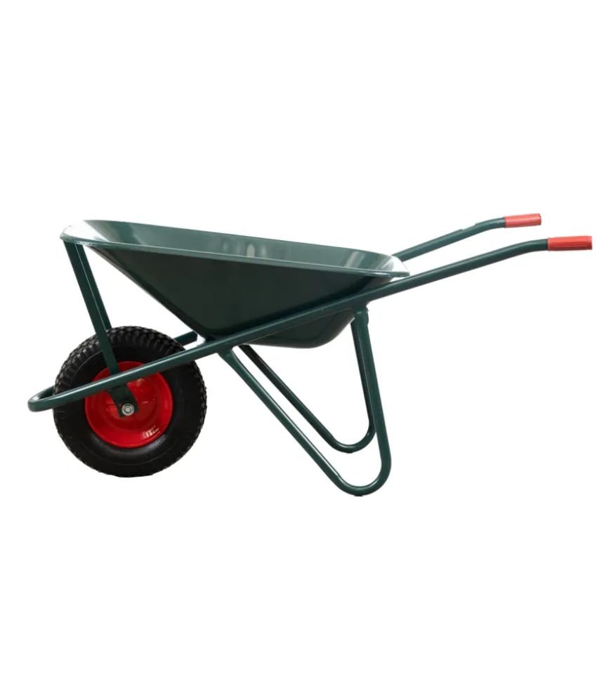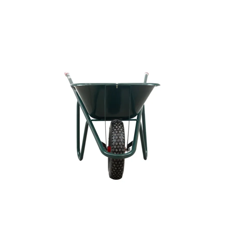 Carriola da giardino in robusto acciaio zincato con vasca da 75 litri. Struttura saldata per maggiore resistenza, bordo arrotondato e lamiera laminata a freddo verniciata verde per una maggiore durabilità.
