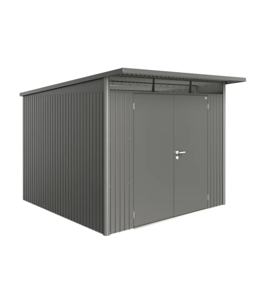 Casetta da giardino Biohort “AvantGarde A7” in acciaio zincato colore grigio quarzo metallizzato con porta battente doppia 260x300x218 cm.