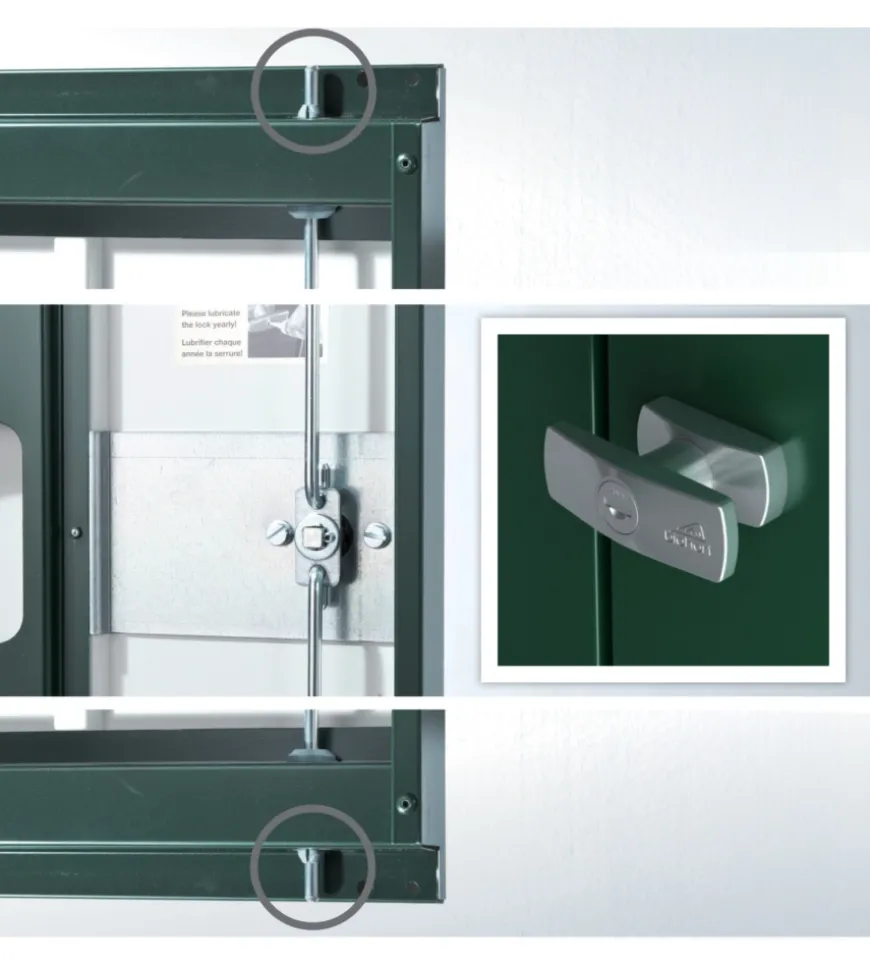 - Chiusura a due punti con cilindro a maniglia girevole