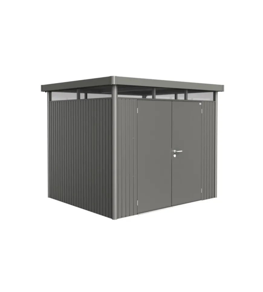 Casetta da giardino biohort “highline h3” in acciaio zincato colore grigio quarzo metallizzato con porta battente doppio 275x235x222 cm – cod. 88049