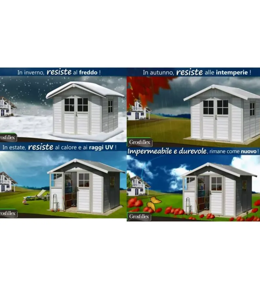Casetta da giardino in pvc Grosfillex “Sherwood Deco 7″ effetto legno 370x298x250 cm – cod. 22907681.