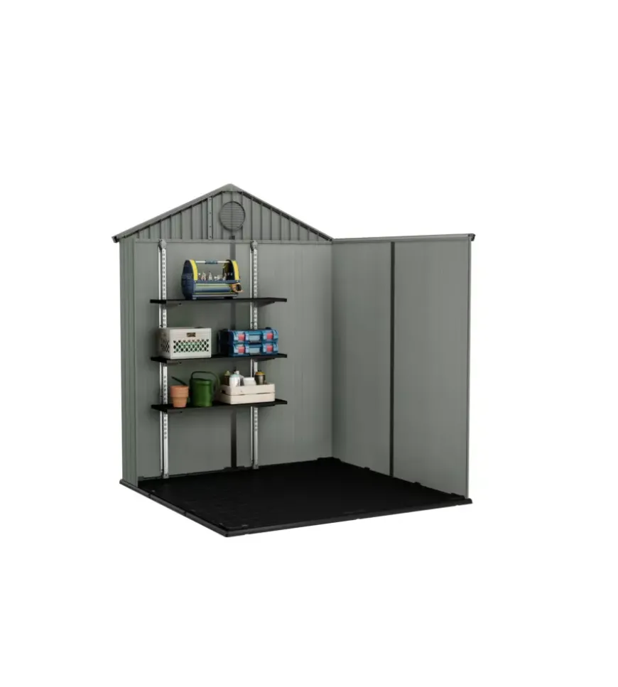 Il pavimento rialzato e resistente, incluso nell’acquisto della casetta da esterno, protegge il contenuto della casetta in resina da fango e acqua. La casetta di di medie dimensioni ha due finestre per l’entrata della luce naturale e due porte per un facile accesso. La casetta da esterno ha una maniglia lucchettabile per impedire gli accessi non autorizzati (lucchetto non incluso). I fori di ventilazione nella casetta da giardino permettono la circolazione dell’aria e prevengono la formazione di umidità.