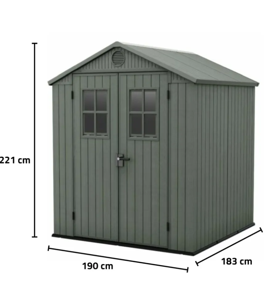 Casetta da giardino Keter “Darwin 6×6” in EVOTECH+ colore verde con porta battente doppia 190x183x221 cm.