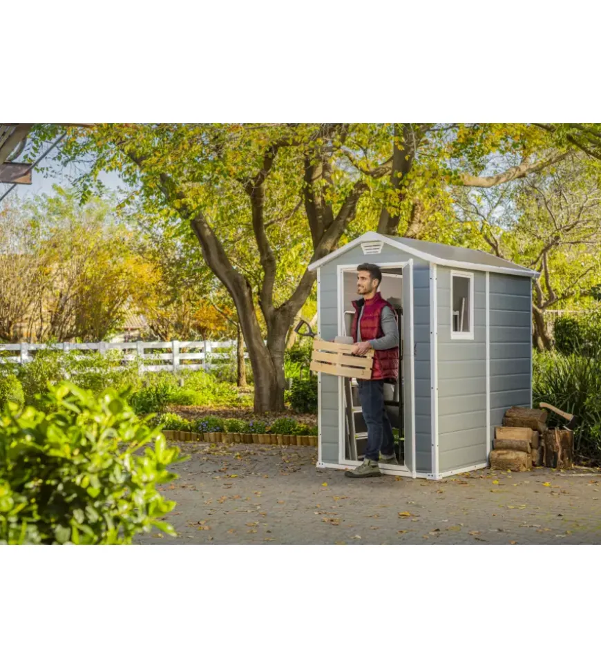 - Dimensioni esterne (incl. sporgenza tetto): 130x192x198 cm (L x P x A)