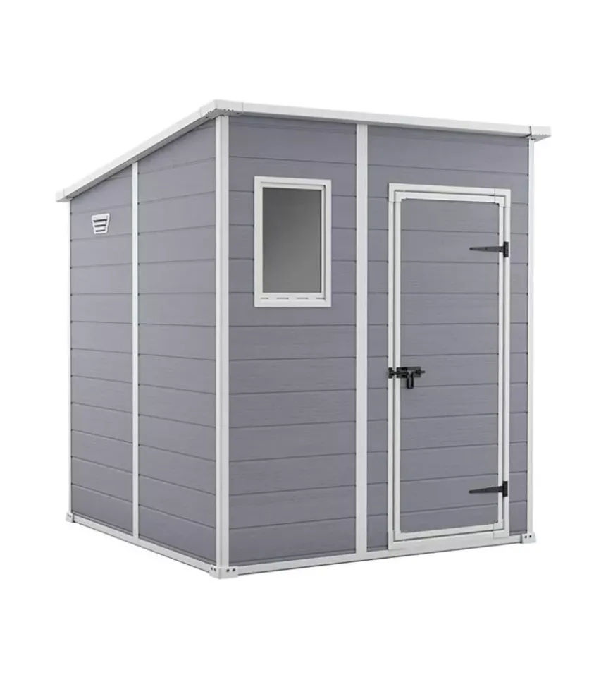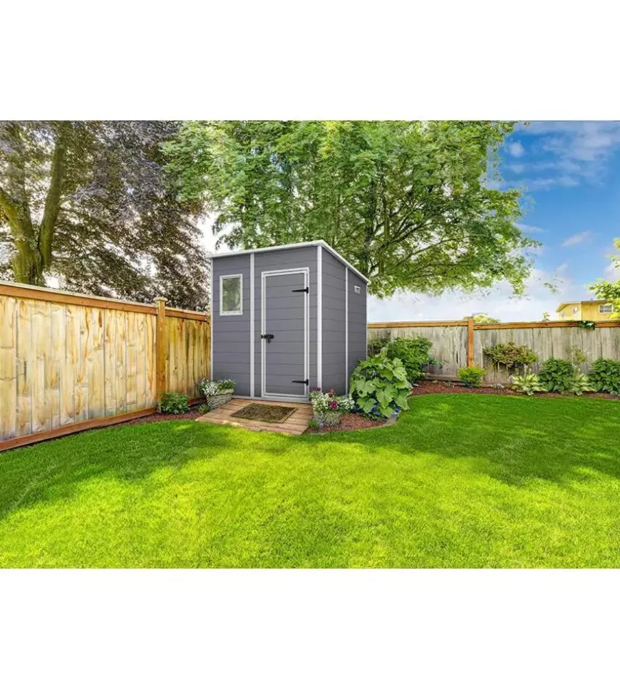 Casetta da giardino keter “manor pent 6×6” in resina colore grigio con porta battente singola 183,5x185x200 cm