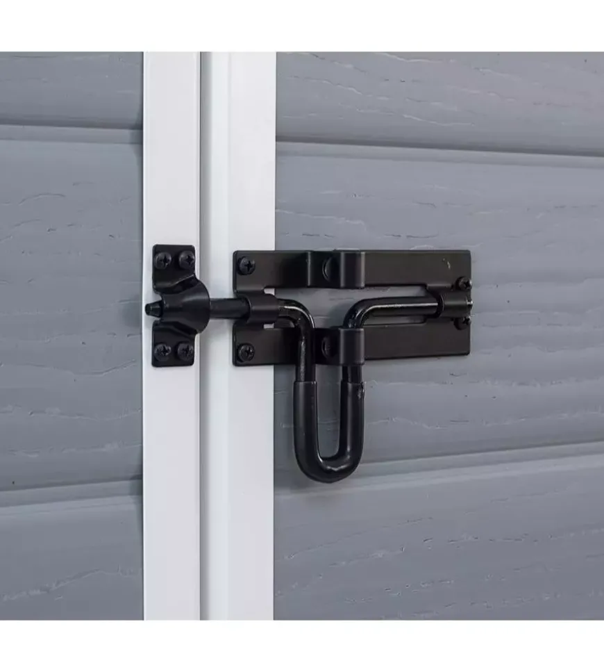 La casetta in plastica da giardino possiede una robusta porta singola con un sistema di chiusura lucchettabile in metallo (lucchetto non incluso) per dare sicurezza e protezione. I fori di ventilazione presenti nella casetta da giardino permettono la circolazione dell’aria e prevengono la formazione di umidità al suo interno.
