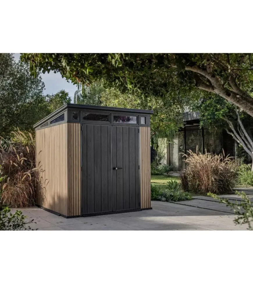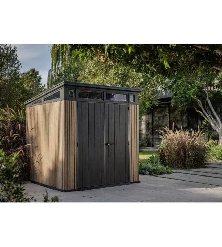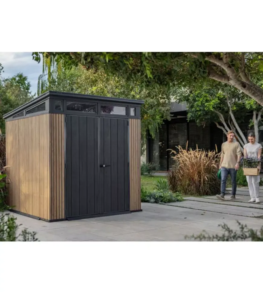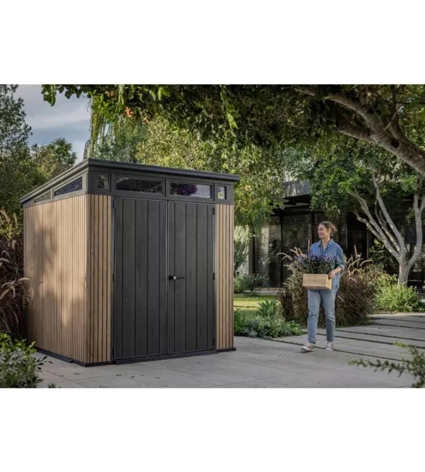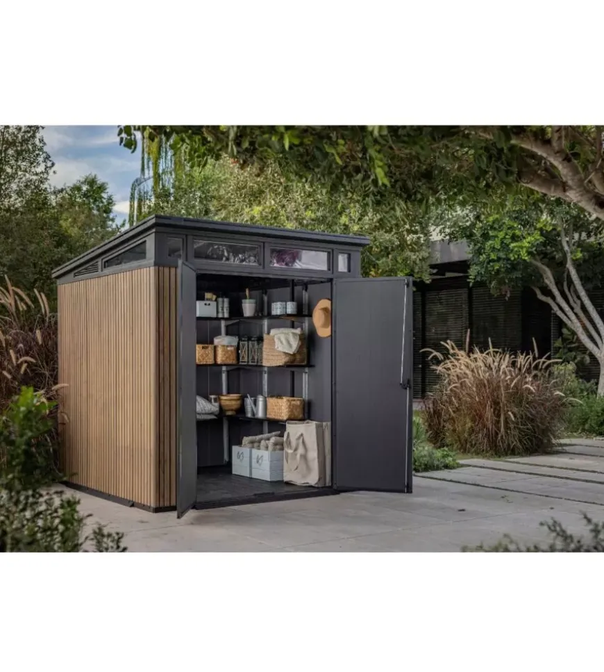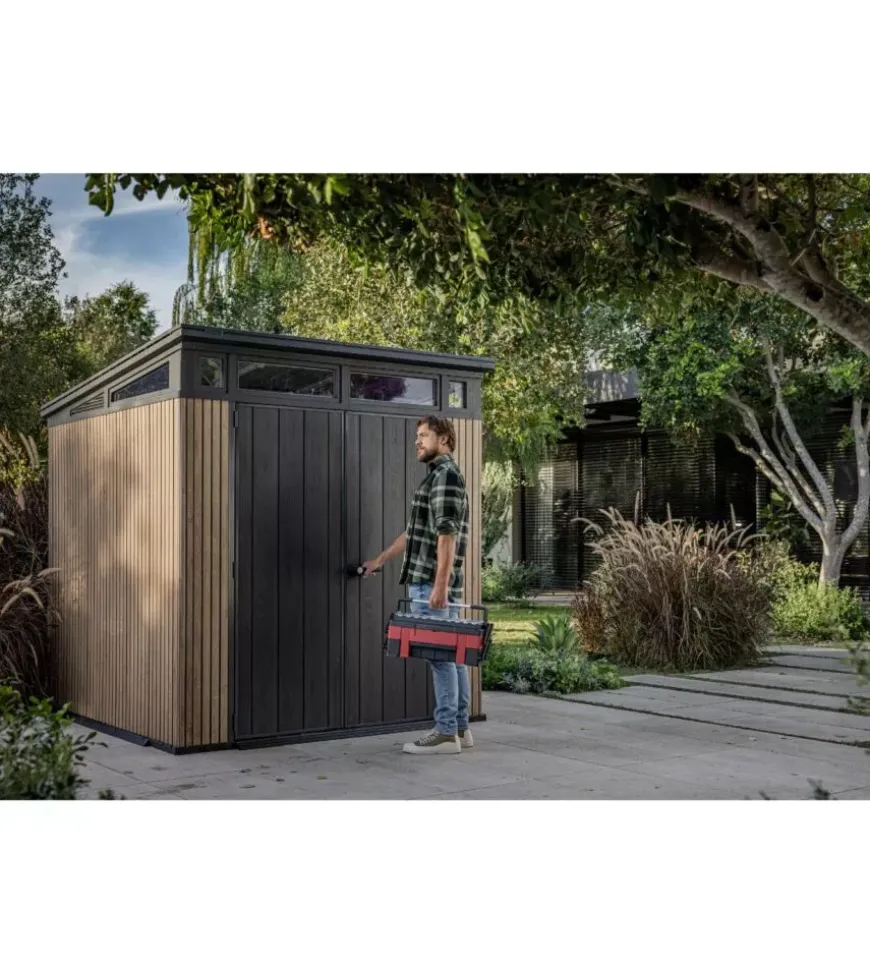 La chiusura lucchettabile offre ulteriore sicurezza, mentre il montaggio semplice e la garanzia di 10 anni ne confermano l’affidabilità. Robusta, resistente agli agenti atmosferici e curata nei dettagli, è la soluzione ideale per chi cerca una casetta da giardino solida e di design.