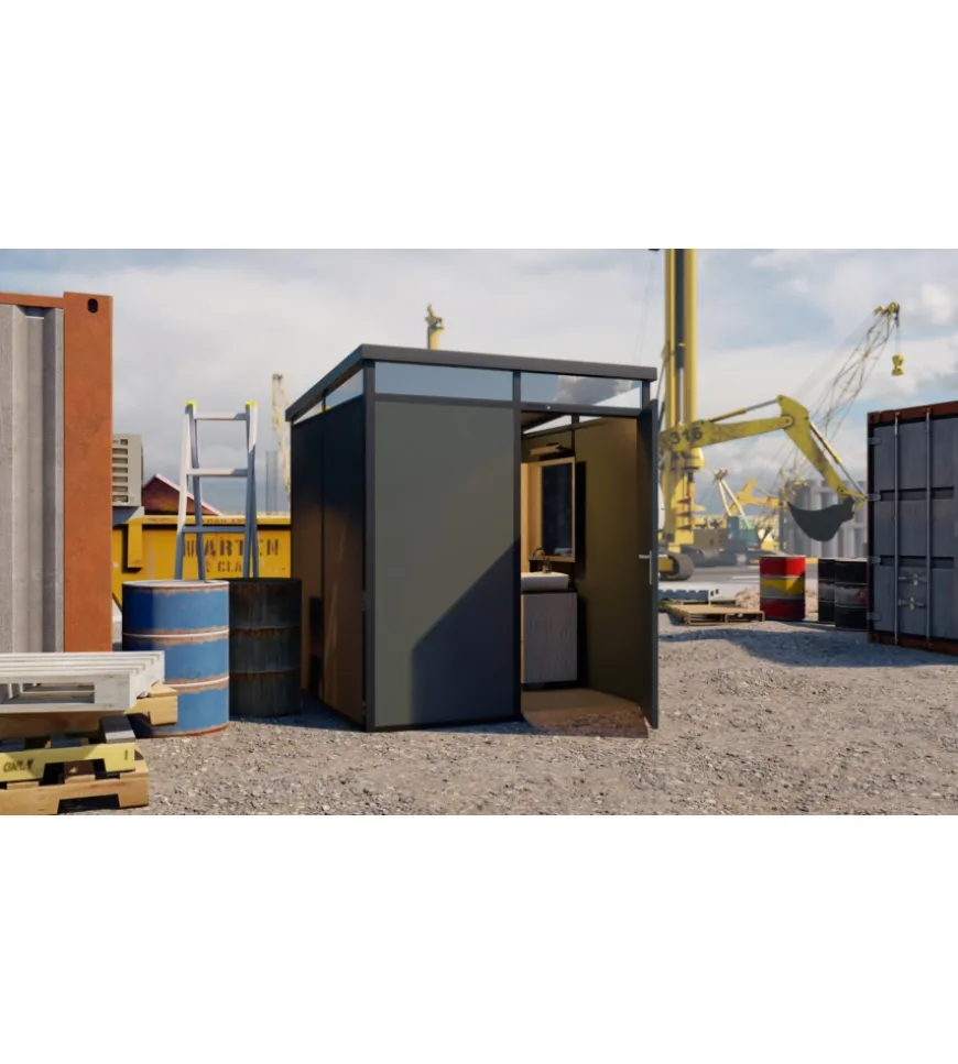 - Incluso: porta con serratura a cilindro, pavimento sopraelevato, lucernari in vetro temperato e rampa di accesso