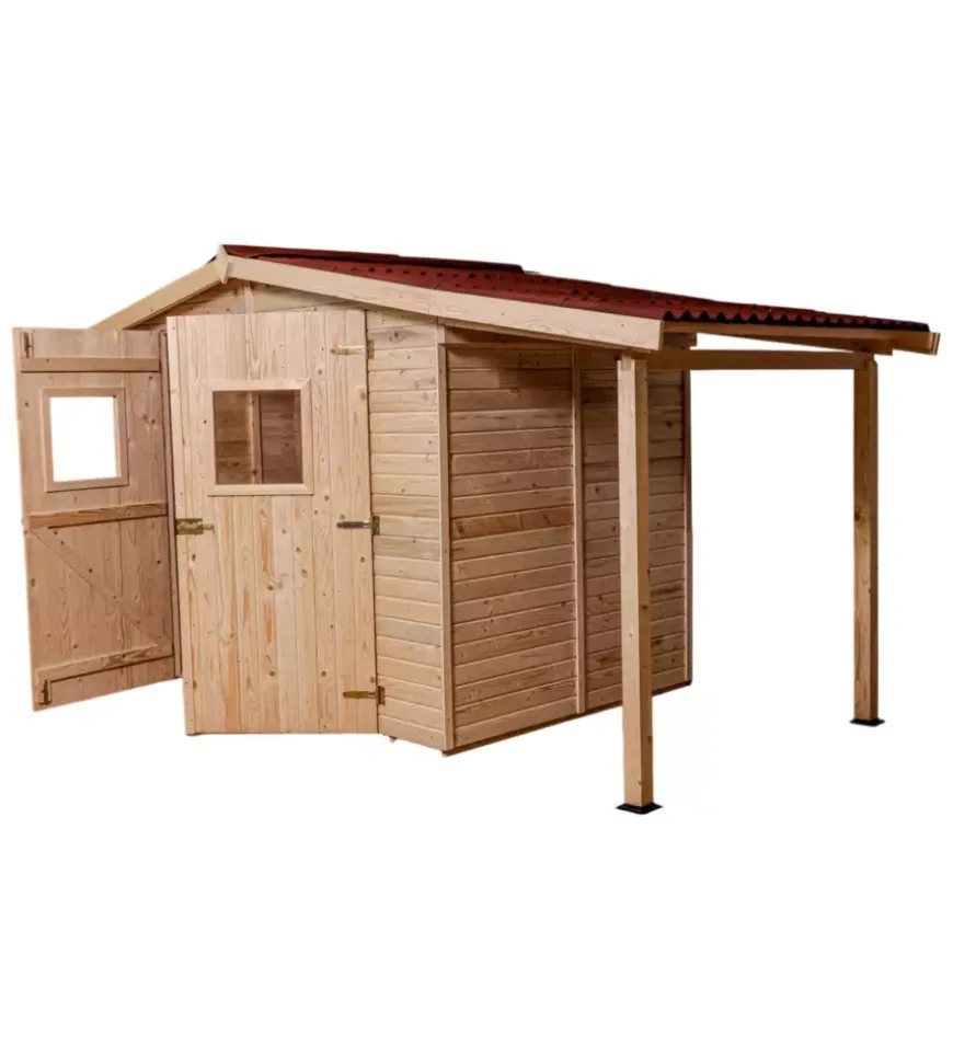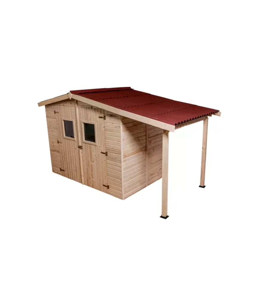 - A terra: rifugio 2,40 x 1,60 m / legnaia 0,96 x 1,60 m / casetta + legnaia 3,36 x 1,60 m
