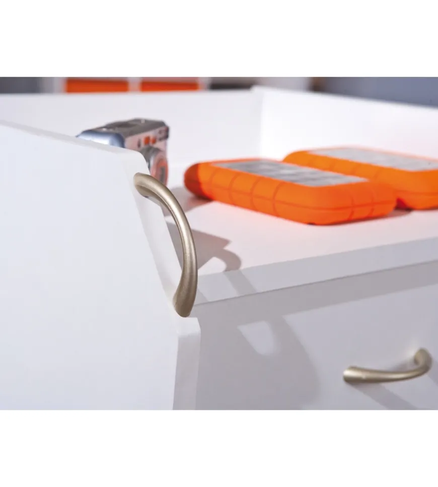 Armadio 3 ante, 3 cassetti e specchio bianco, 140x190x55 cm