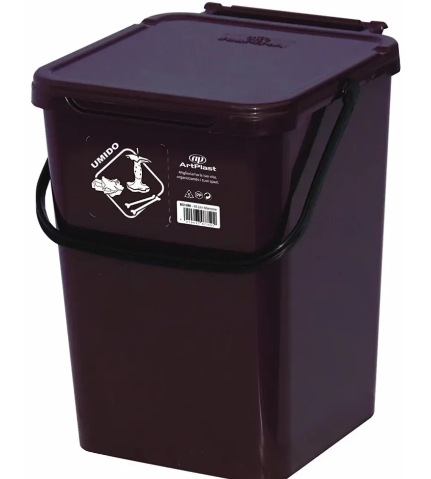 Cassonetto in plastica marrone con coperchio per raccolta differenziata, 10 lt