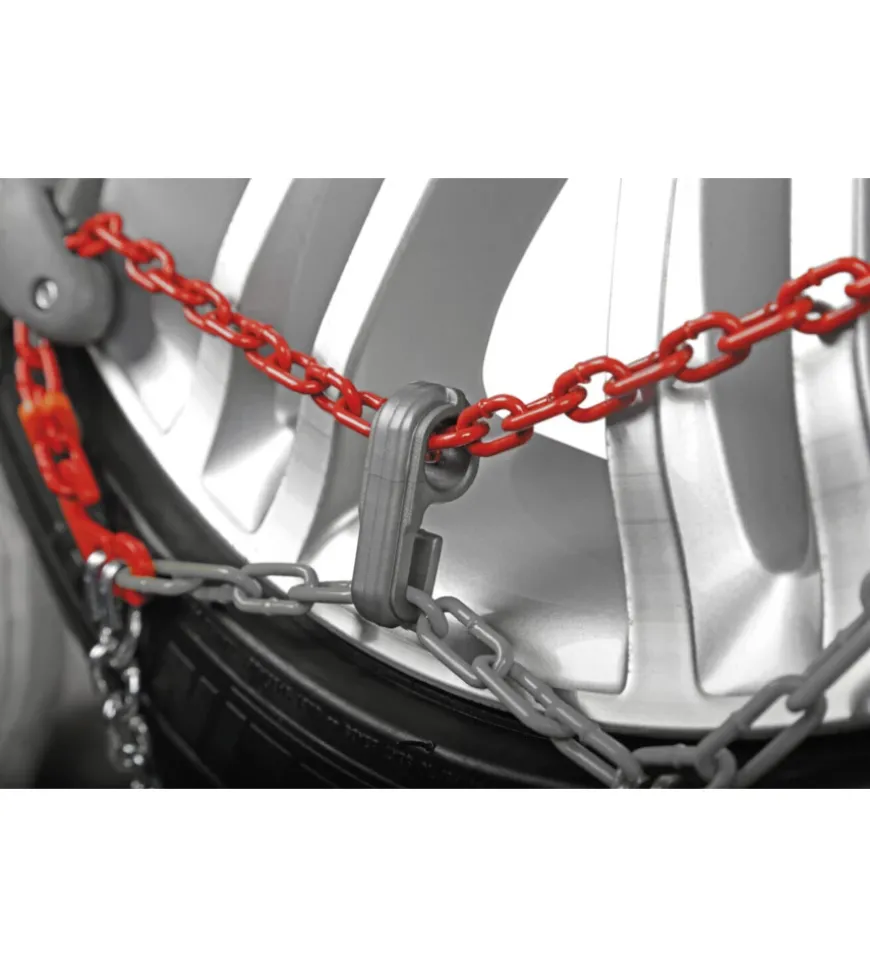 Coppia catene da neve maglia compatta, 9 mm di ingombro interno.Ideale per tutte le vetture con spazio limitato tra pneumatico e parti meccaniche.Sistema di auto-tensionamento Dopo il montaggio ed il tensionamento manuale, la catena può tendersi ulteriormente in modo automatico evitando ulteriori fermate durante la guida. Battistrada a rombo in acciaio cementato speciale. Maglie corte con sezione a D utilizzabili da entrambe le parti. Cavo interno flessibile per un montaggio facile senza sollevare e spostare la vettura. Nuovo blocca-catenino in plastica composita ideale per cerchi in lega.Omologazione TÜV AUSTRIA – ÖNORM V 5117 GEPRÜFT. COMPATIBILITA’: 225/70-16, 235/70-16, 225/65-17, 235/60-17, 245/55-17, 225/60-18, 235/55-18, 245/50-18, 225/55-19, 245/45-19, 245/40-20, 265/35-20, 285/30-20