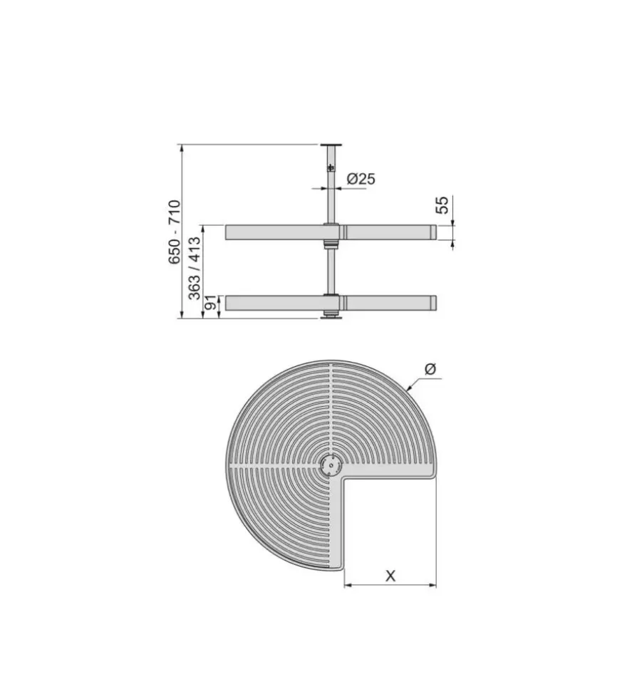 Cestello “3/4” girevole 270° per mobile da 80 cm