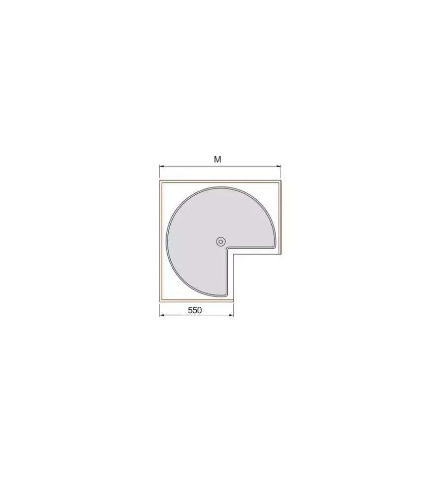 Cestello girevole tre quarti progettati per ottimizzare lo spazio in moduli ad angolo di cucina a forma di L.