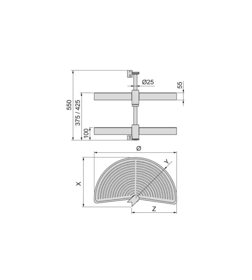 - Cestelli girevoli 1/2 luna progettati per moduli angolari della cucina.