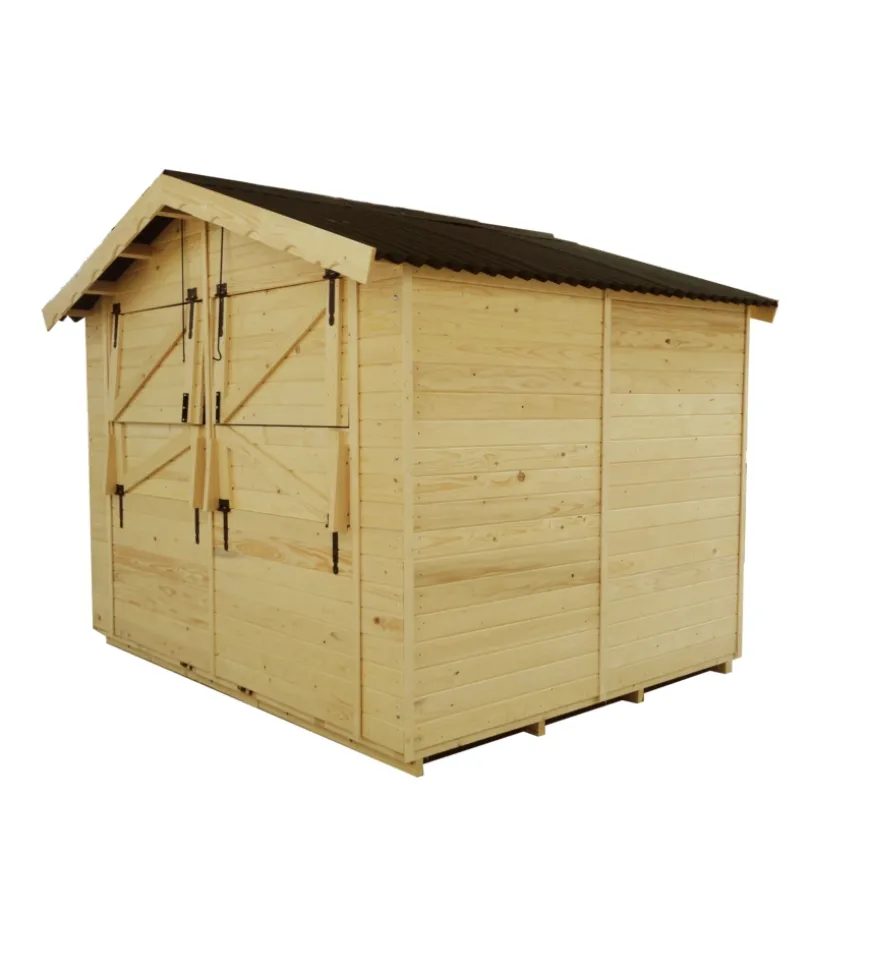 - Struttura tetto: due pignoni in pannelli pre-assemblati di tavole piallate, con scanalatura a incastro, spess. 20 mm fissati al telaio sezione 40 x 40 mm e travetti in legno massello