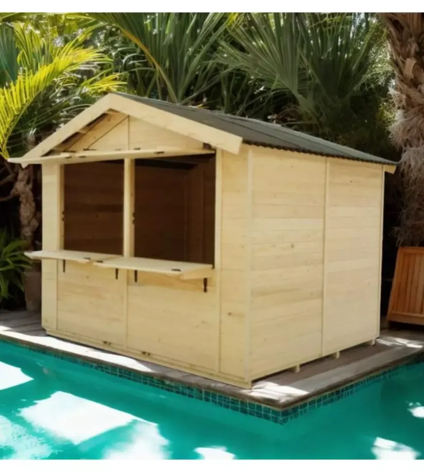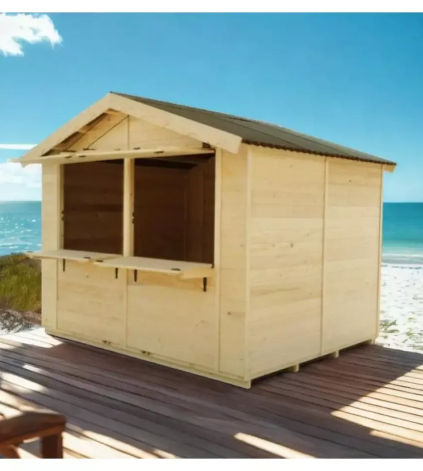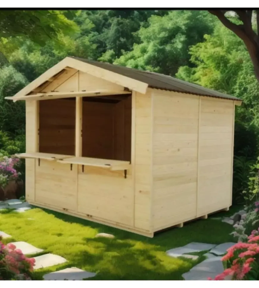 - Struttura tetto: due pignoni in pannelli pre-assemblati di tavole piallate, con scanalatura a incastro, spess. 20 mm fissati al telaio sezione 40 x 40 mm e travetti in legno massello