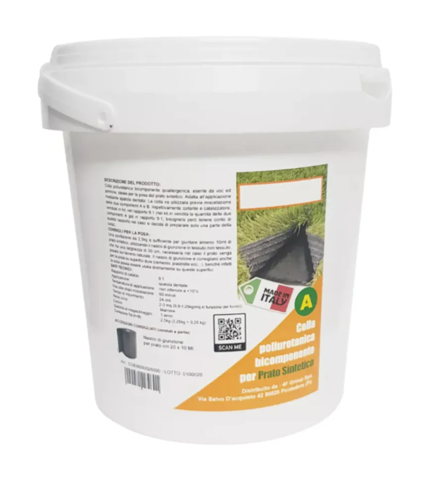 La colla bicomponente per prati sintetici è studiata per l’incollaggio tra le giunzioni dei manti erbosi, garantendo una finitura uniforme e praticamente invisibile. Compatibile con tutte le tipologie di bande di guarnizione per manti erbosi sintetici, assicura un’adesione duratura. Si applica facilmente con spatola dentata, permettendo una distribuzione omogenea del prodotto. La confezione da 5 kg offre una resa di 4-6 mq, ideale per superfici medie. Perfetta per interventi precisi e duraturi, è la scelta di chi vuole ottenere risultati a regola d’arte sin dalla prima applicazione.